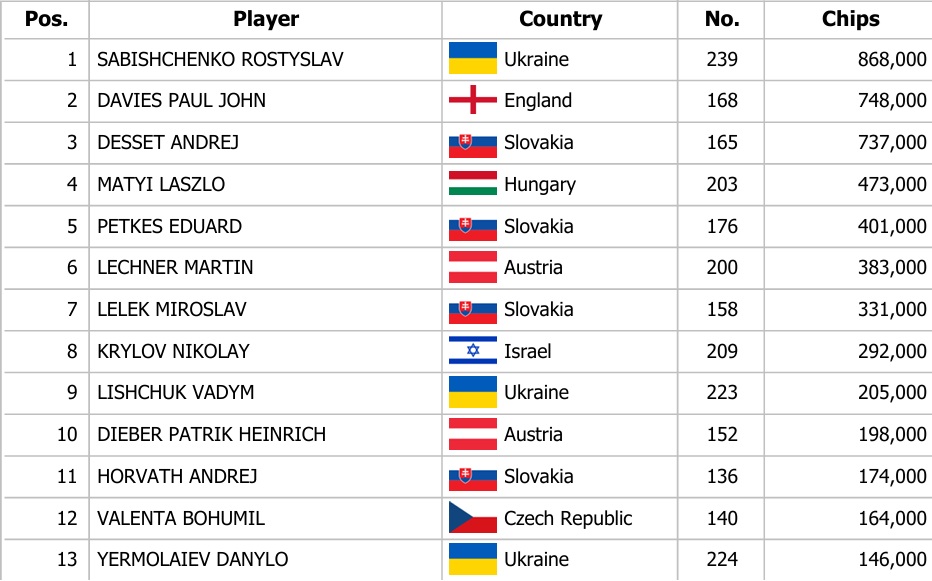 Dnes budou na programu dva flighty Main Eventu s garancí 250.000€ a buy-inem 170€. První z dvojice začne v 15:00 hodin a druhý s Turbo strukturou ve 22:00 hodin.