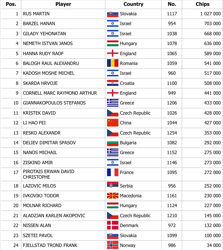 Nejsilnější hrací den se odehrál během včerejška. V sobotu byly na programu tři flighty, ve kterých jste si mohli zajistit postup do Day 2. Během těchto flightů bylo na chipleader bonusech rozdáno až 7 800 €.