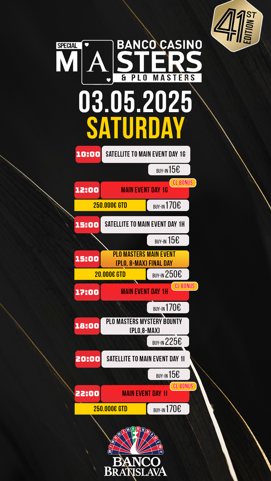 Už teď je více než jisté, že 250.000€ garance Main Eventu Banco Casino Masters neodolá. 41. vydání si nenechalo ujít množství hráčů, kteří přijíždějí do hlavního města Slovenska z celého světa.