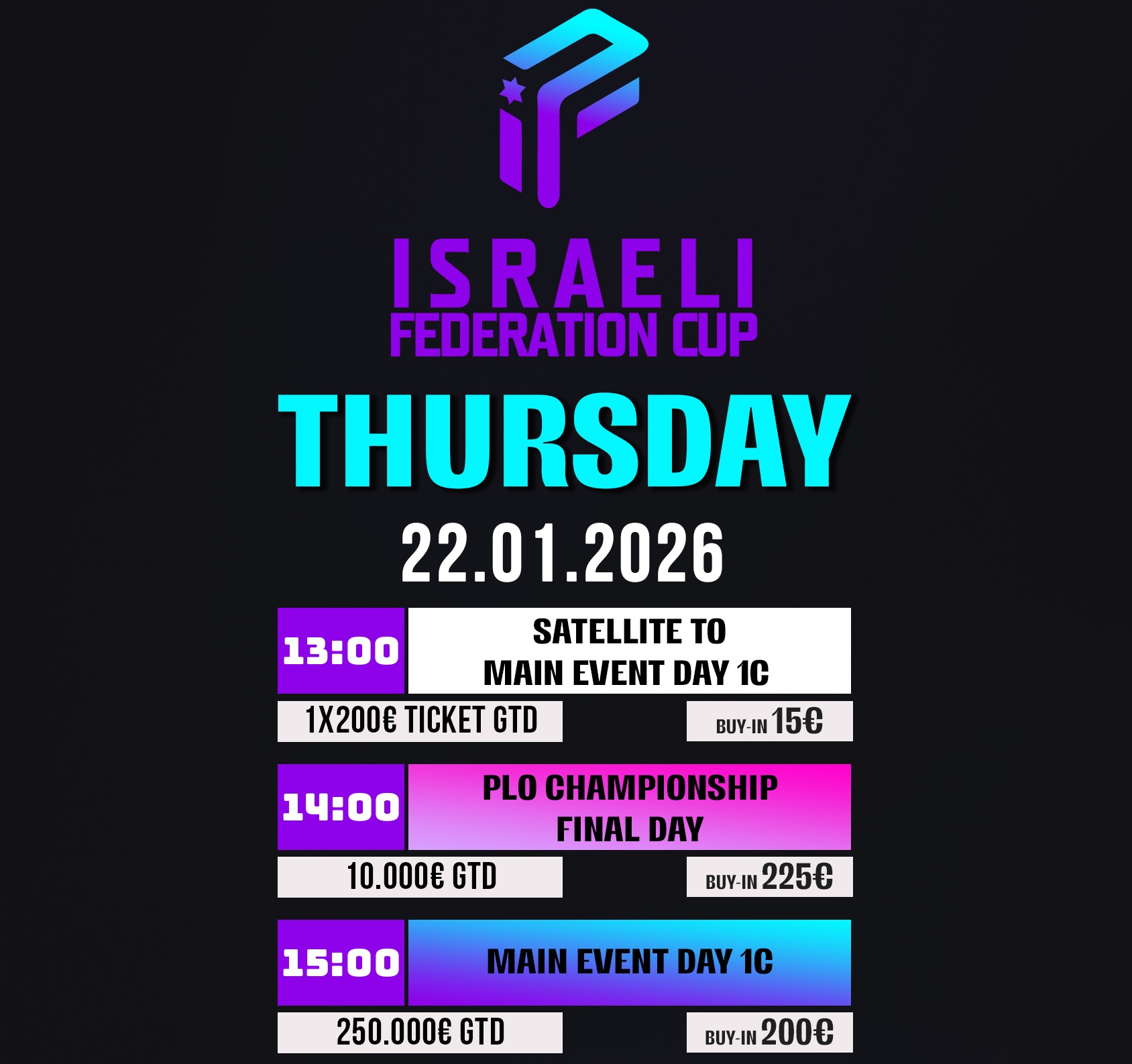 Israeli Federation Cup Main Event 250.000€ GTD – 1B: