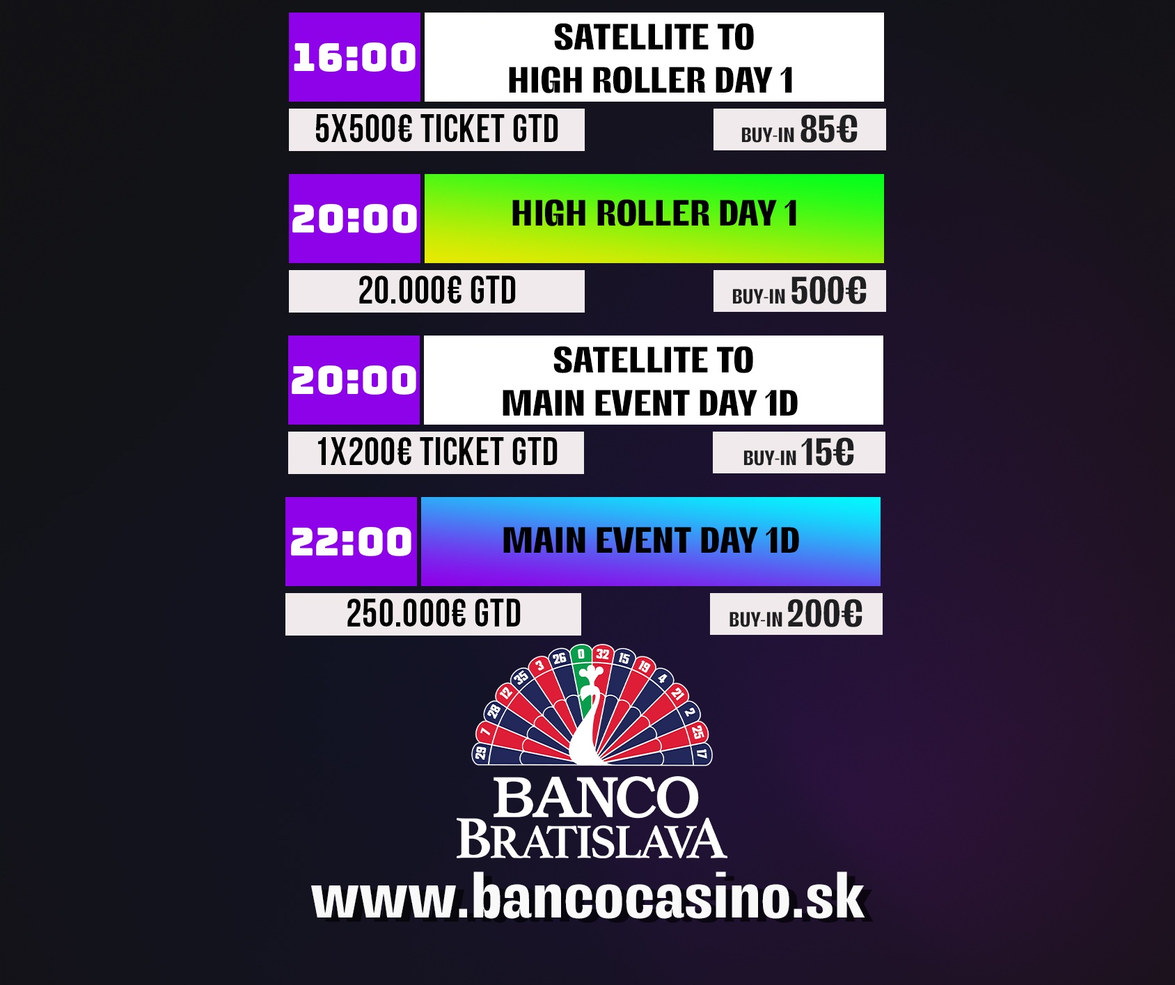 Celkem má Main Event zaznamenáno 192 entries a do Day 2 poslal 19 hráčů. Dnes se k nim přidají další z flightu 1C, který startuje v 15:00, a také z flightu 1D Turbo, který má start v plánu na 22:00.