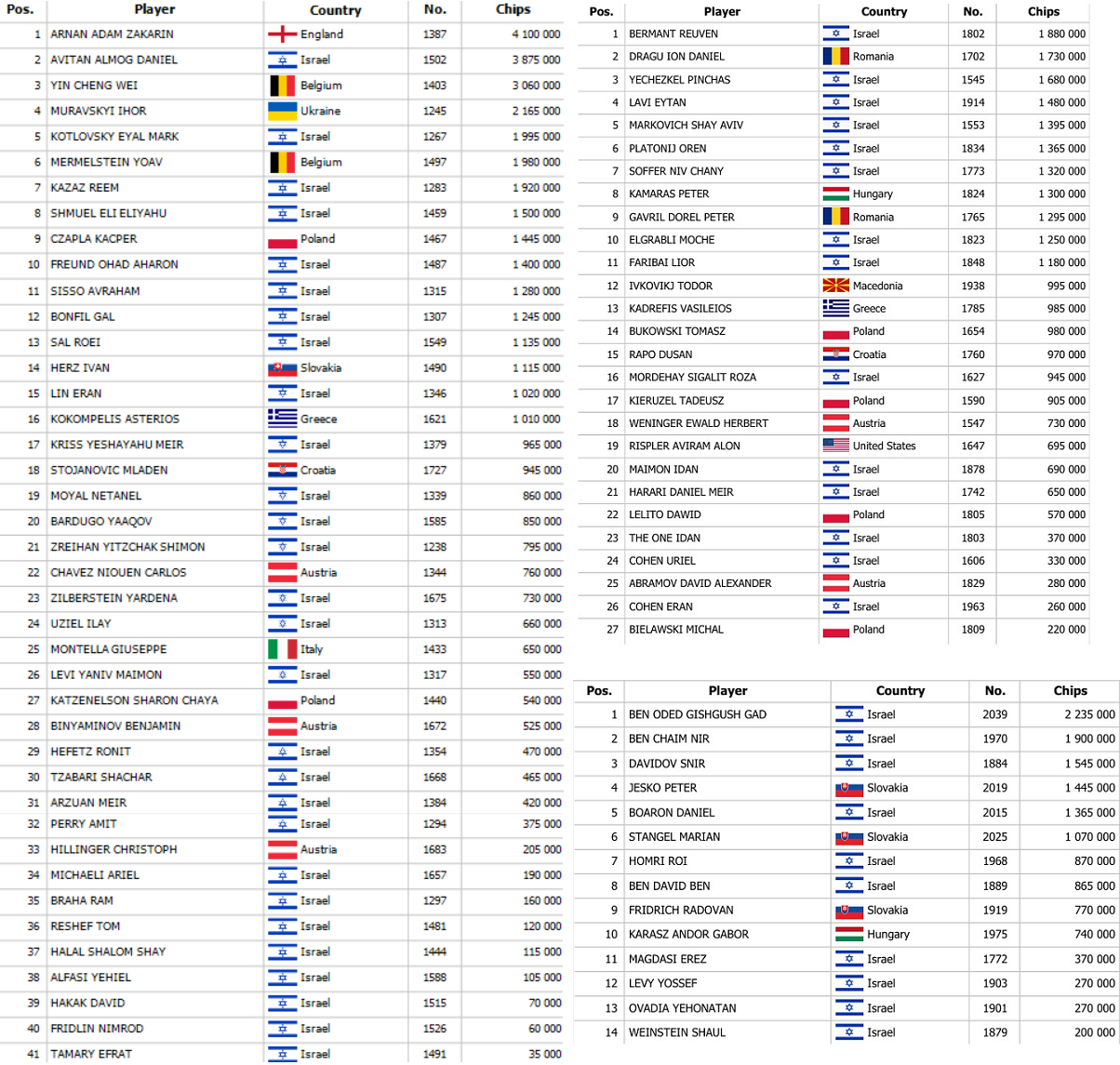 Israeli Federation Cup, který se momentálně koná v Banco Bratislava, se blíží do finále. Tato novinka předčila očekávání, jelikož garance Main Eventu zůstala daleko za sebou. Do této chvíle hráči zaznamenali 2031 entries, což však není konečné číslo. To se dozvíme dnes po Hyperturbo flighte, který začíná v 10:00 hodin.