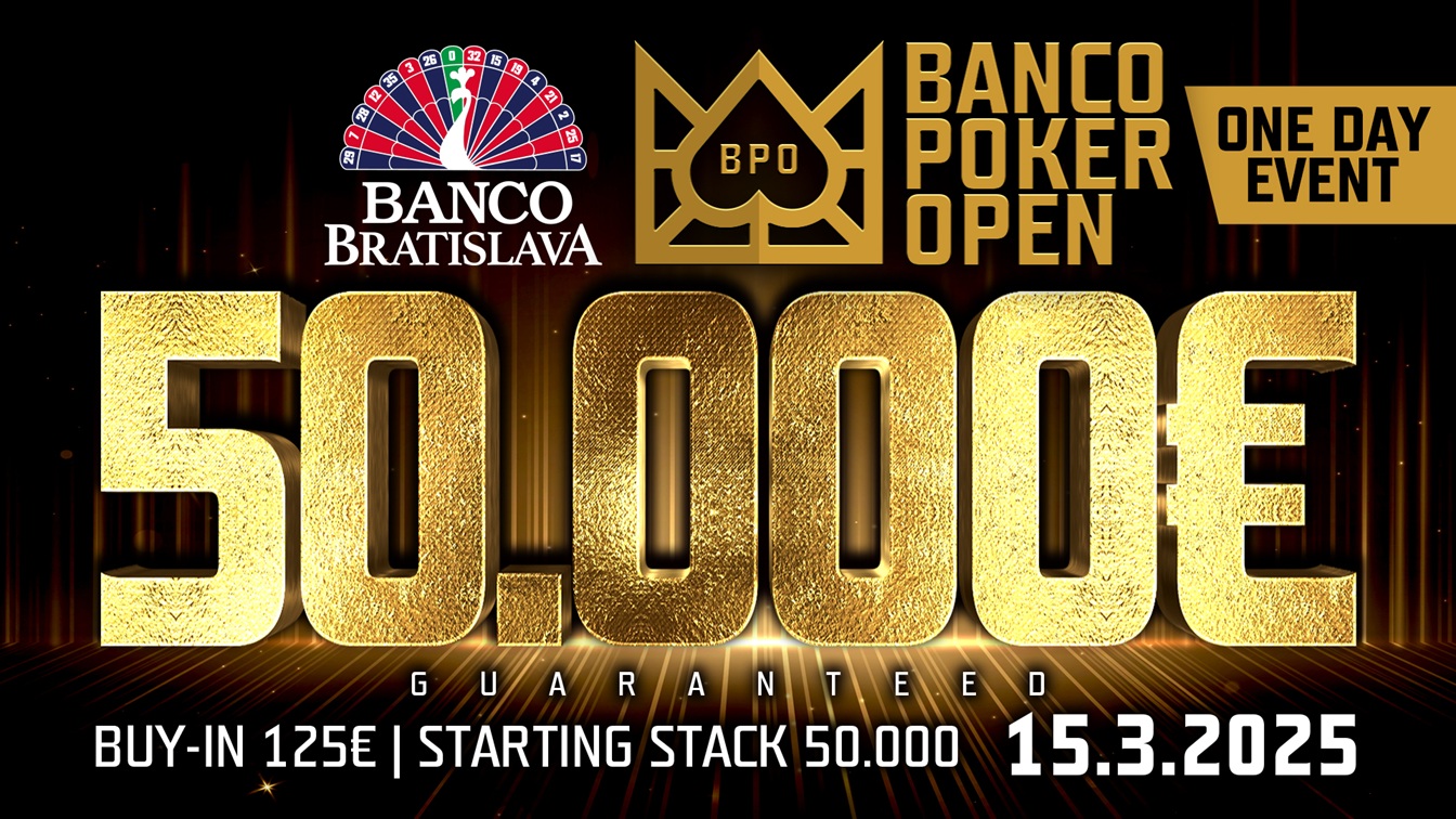 Nová série z dílny Banco Bratislava odstartovala rok 2025 výborně. Má za sebou už dvě úspěšná vydání a v březnu na vás čeká další. Banco Poker Open bude garantovat 50.000€ za 125€. Dne 15.3.2025 od 17:00 usednou za stoly hráči, kteří zabojují o titul a s ním spojenou odměnu. Na začátku dostane každý 50.000 chipů a levely budou mít 30 minutovou délku.