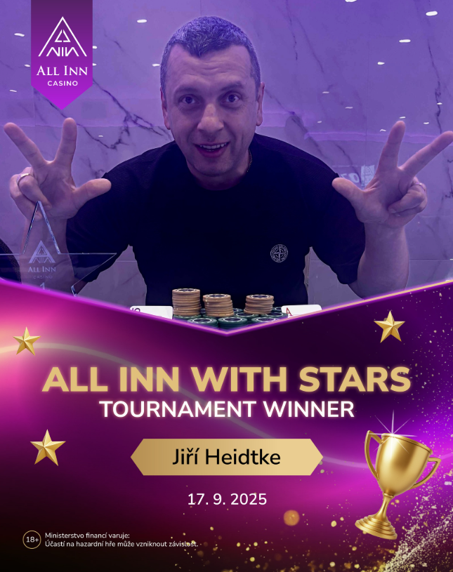 Tito hráči se utkají o prestižní titul šampiona první série ALL INN WITH STARS a hlavní výhru 100 000 Kč:
