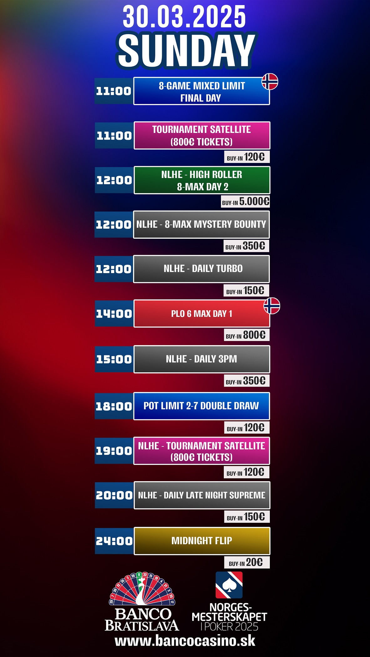Norské Pokerové Mistrovství v Banco Bratislava pokračují. Do poker roomu přichází stále více a více pokerových hráčů, kteří se to snaží rozbalit nejen v turnajové, ale i v cash game části. Během včerejšího večera bylo otevřeno až 16 cash game stolů.