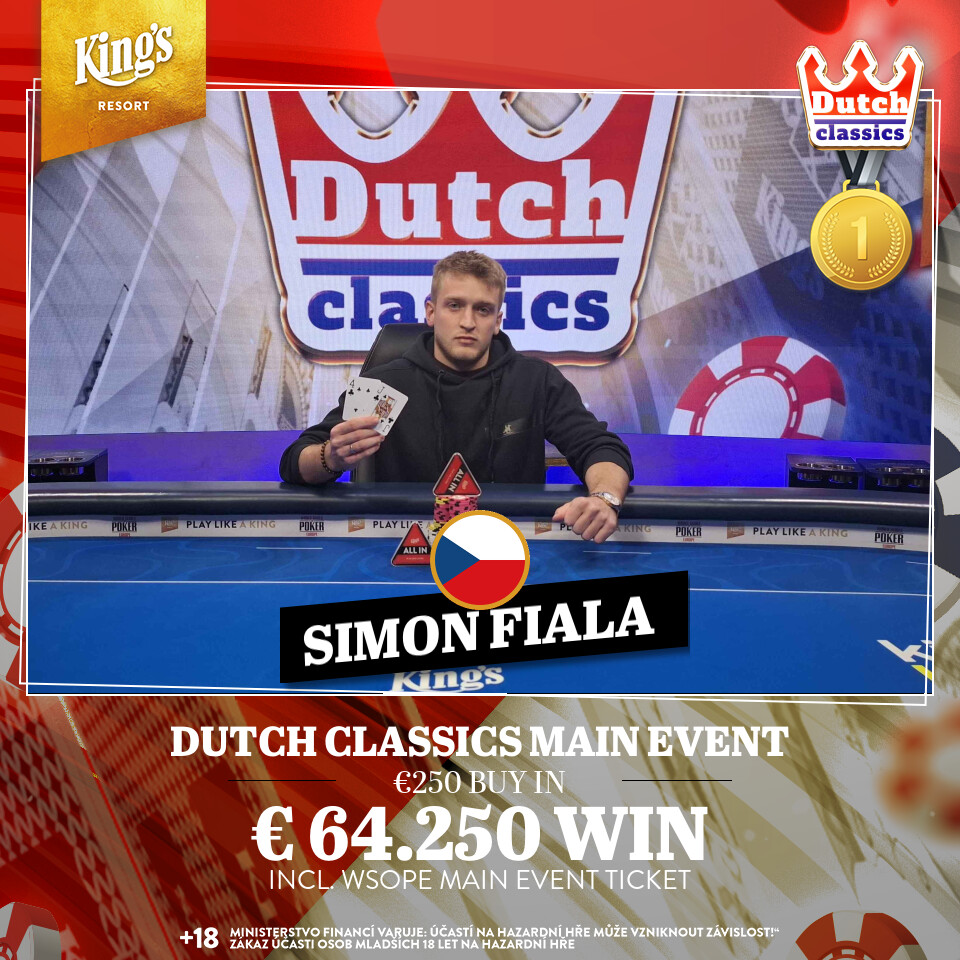 King's Resort Rozvadov opět praskal ve švech během festivalu Dutch Classics, kde Main Event s buy-inem 250 € přilákal přesně 1 807 účastí. Kromě finančních odměn čekaly na nejúspěšnější účastníky také 4 vstupenky na Main Event World Series of Poker Europe v hodnotě 10 350 €. Taková motivace přilákala do Rozvadova hráče z celé Evropy. Po devíti startovních flightech a dlouhém day 2 se do včerejšího finále probojovalo posledních 25 hráčů.