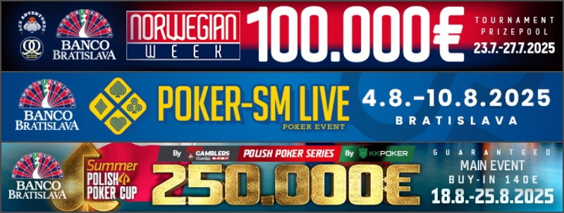 Banco Bratislava také zveřejnilo blížící se turnaje na léto 2025 a další eventy, které bude postupně odhalovat. Druhá polovina roku bude nabitá pokerovou akcí a rozhodně je na co se těšit.