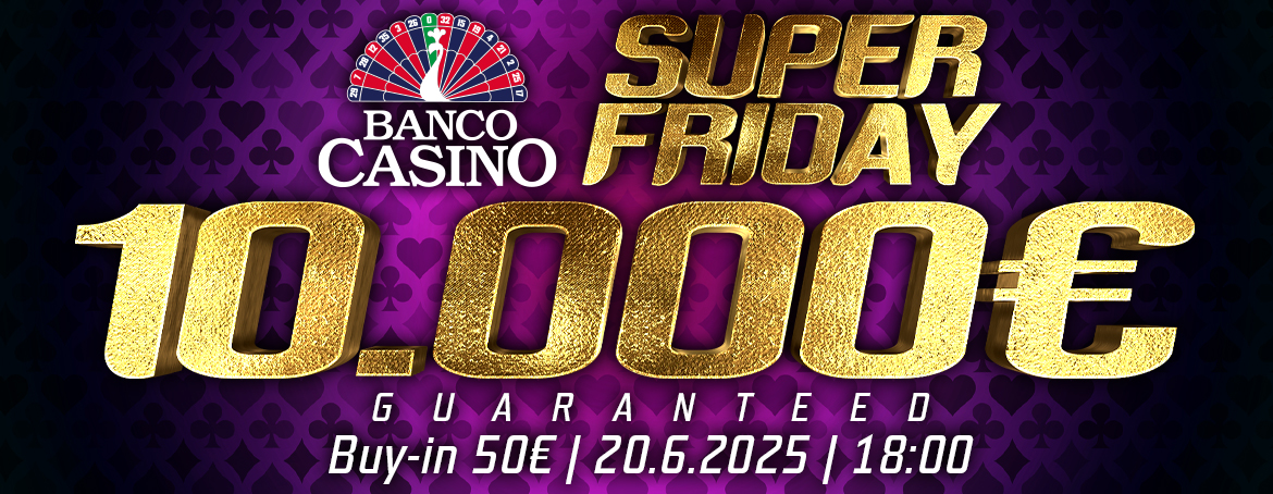 Nadcházející víkend bude v Banco Bratislava ve znamení jednodenních turnajů s celkovou garancí 30.000€. Jako první se v pátek 20. června odehraje Super Friday s garancí 10.000€. Do turnaje naskočíte za buy-in 50€, za který obdržíte 50.000 v žetonech. Start je naplánován na 18:00 a registrace poběží během úvodních dvanácti levelů po 25 minutách.