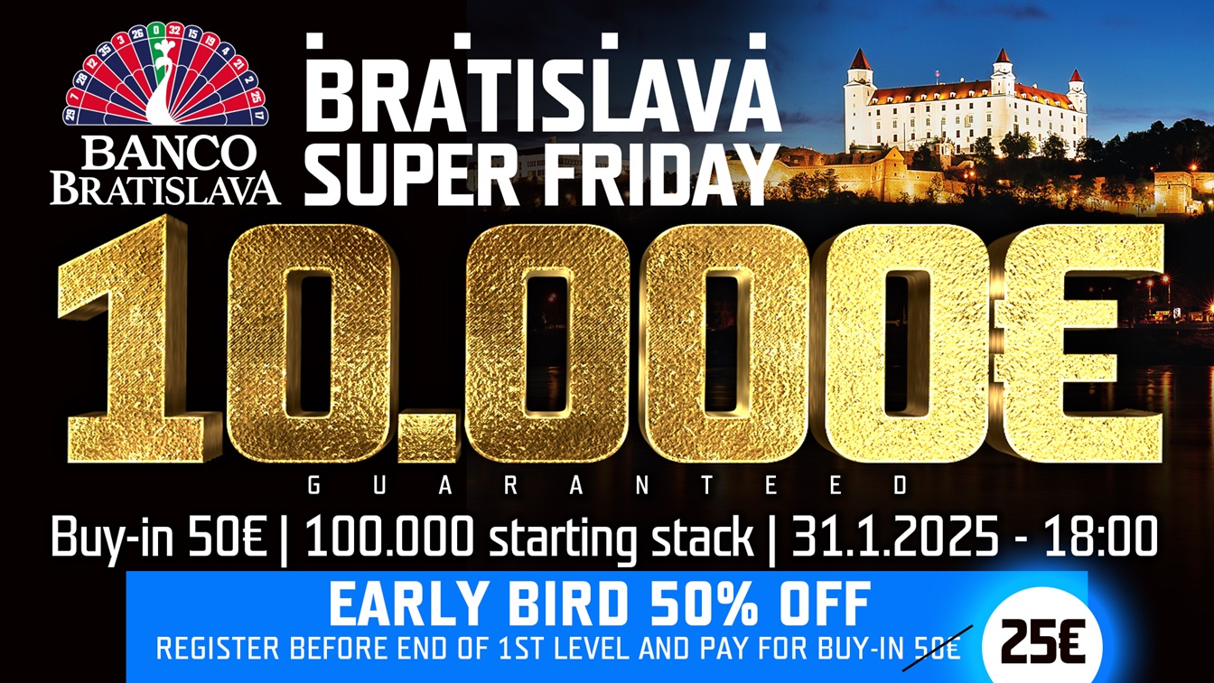 Konec ledna přinese do Banco Bratislava skvělé jednodenní turnaje s výbornými garancemi. O ty si budete moci zahrát díky akci jen za 75€. Stačí když se do turnaje zaregistrujete do konce 1. levelu a 50% sleva na buy-in se vám automaticky uplatní.