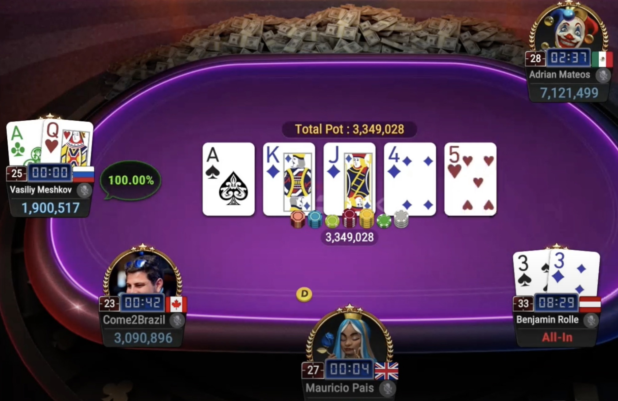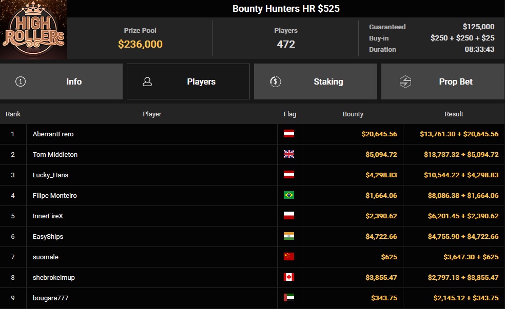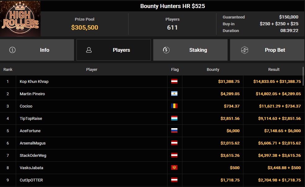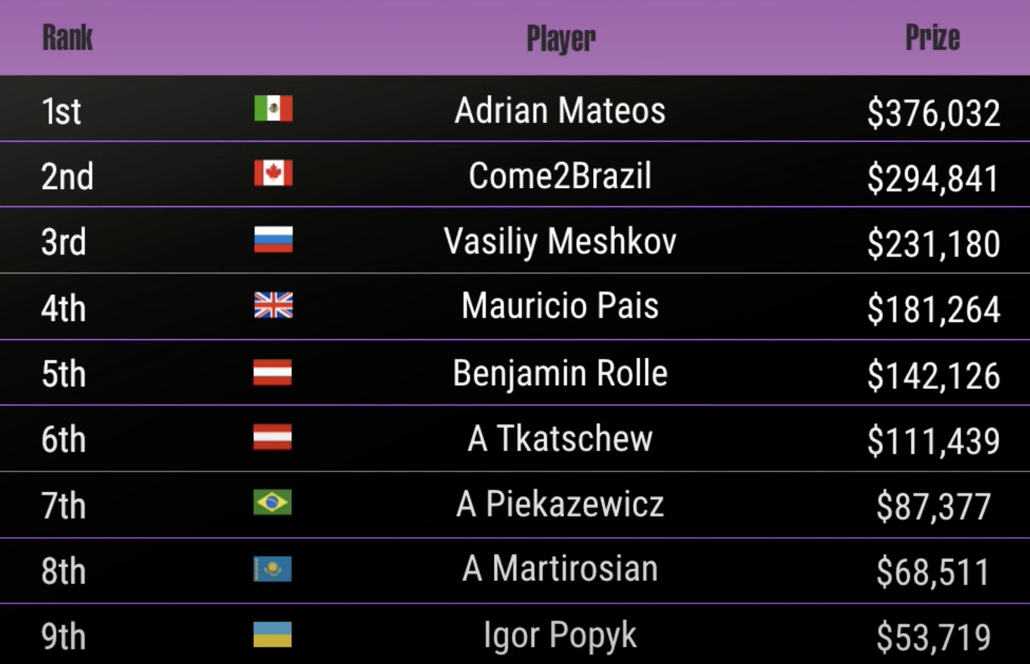 Das deutschsprachige Duo Alexander Tkatschew und Benjamin Rolle zeigte eine starke Leistung, doch der ursprüngliche Chipleader setzte sich am weitesten durch. Tkatschew landete auf dem 6. Platz, während Benjamin Rolle mit dem 5. Platz und einem Preisgeld von $142.126 abschloss.