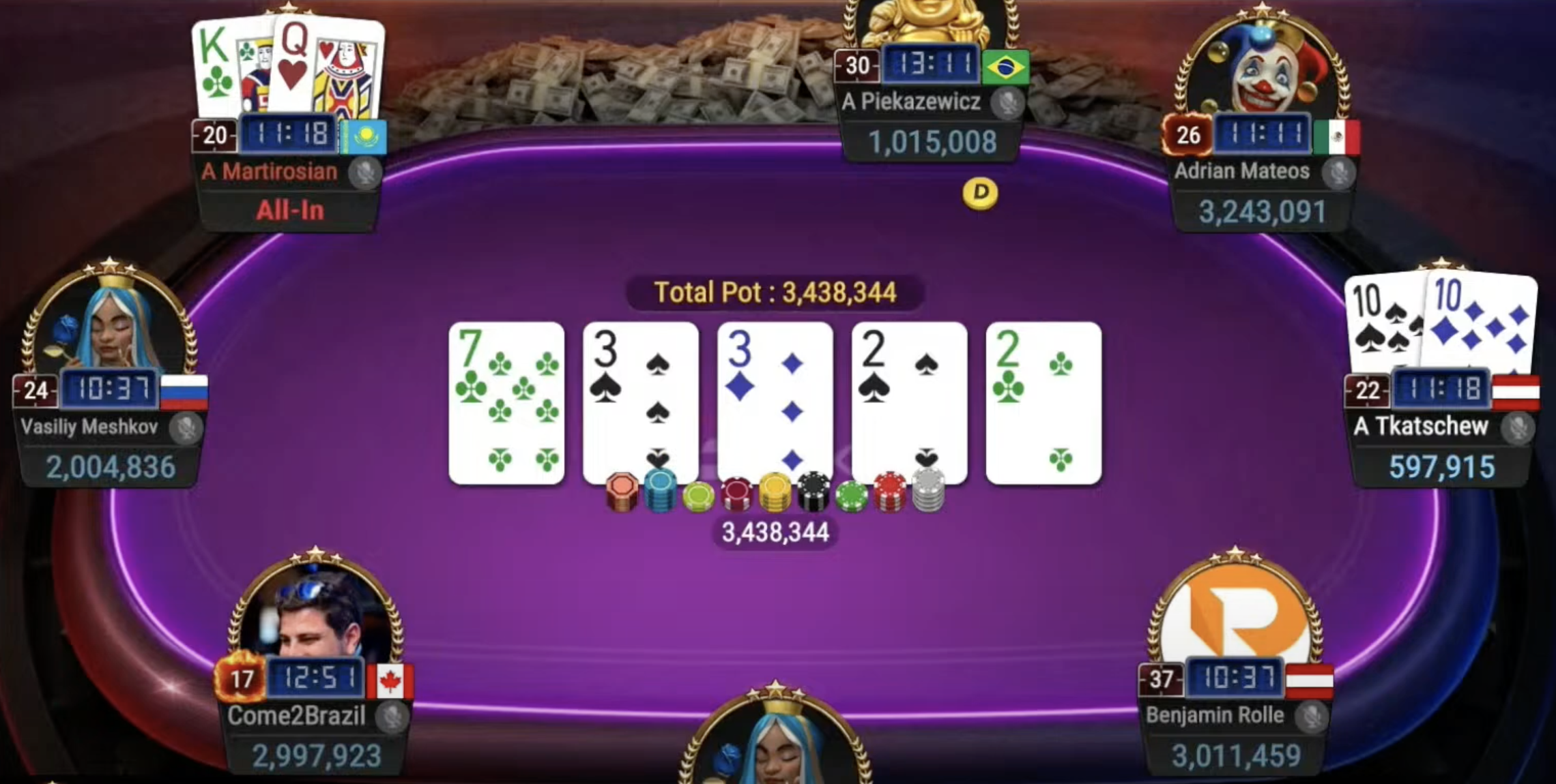 Artur Martirosian, der mit 11 GGMillion$-Titeln den Rekord hält, landete auf dem 8. Platz und erhielt $68.511. Seine Reise endete durch die Elimination von Alexander Tkatschew.