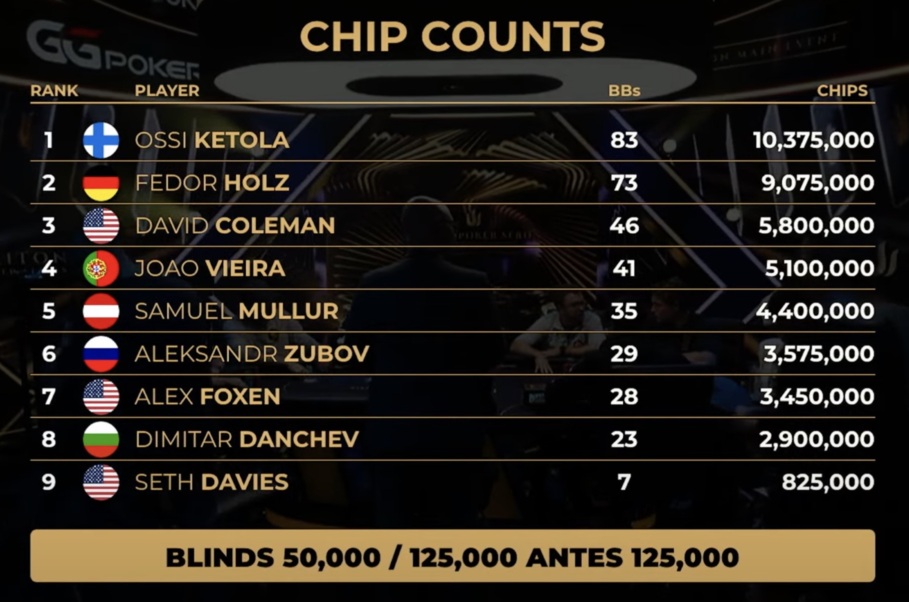 Auch am Finaltisch sah es so aus, dass Ossi Ketola immer noch der Chipleader war. Er musste sich jedoch mit dem fünften Platz begnügen, der mit $1.172.000 dotiert war. Fedor schied kurz vor dem Heads-up aus und nahm für seinen dritten Platz $1.830.000 mit nach Hause.