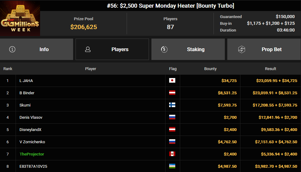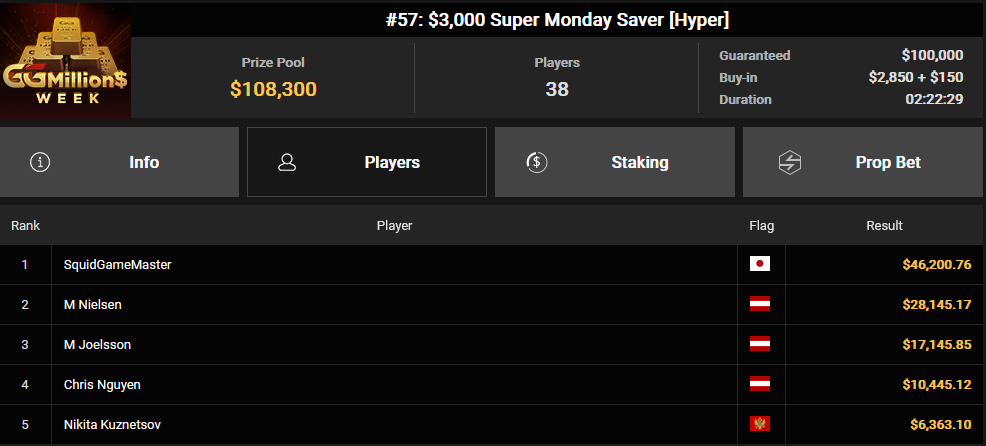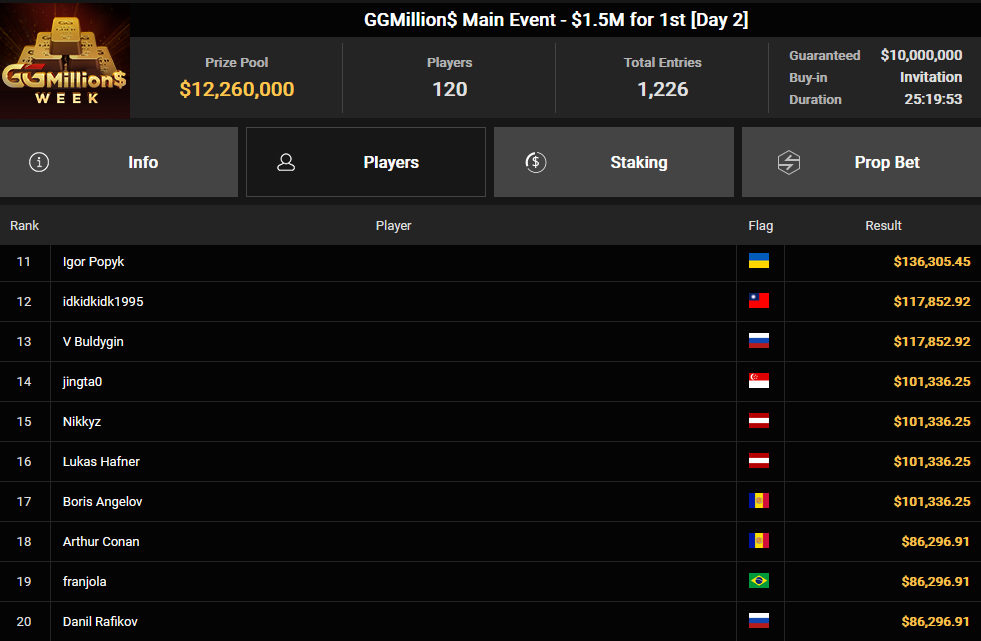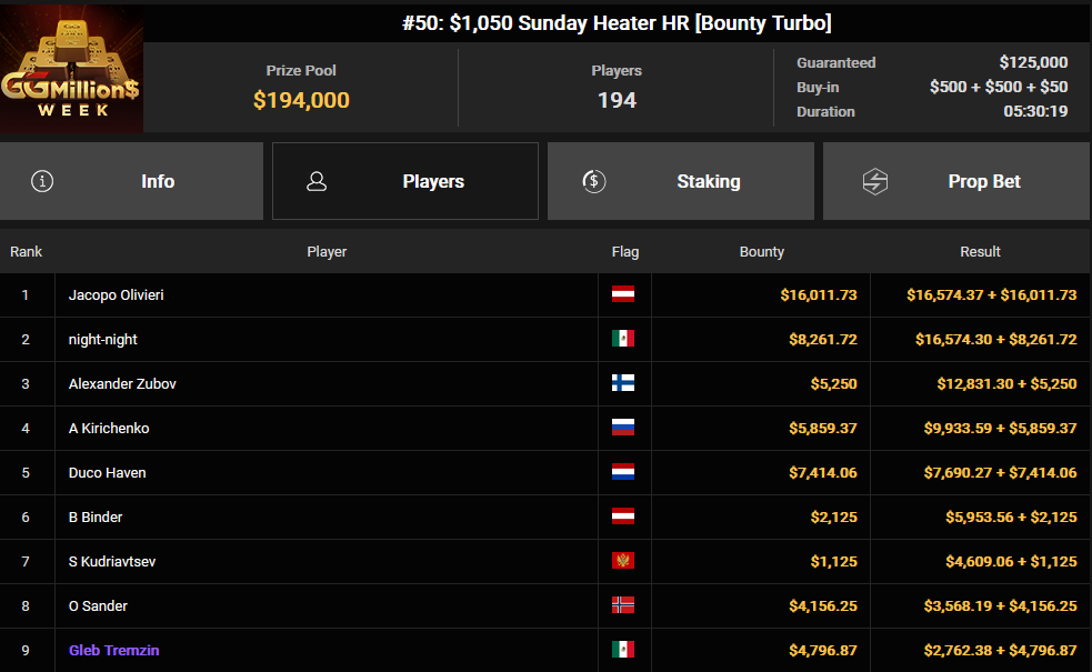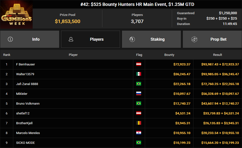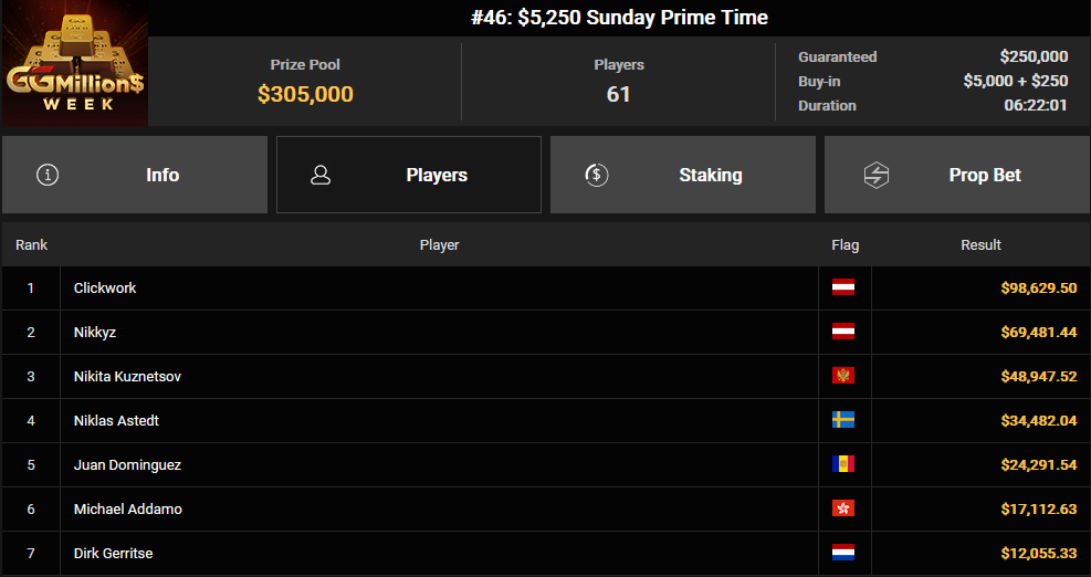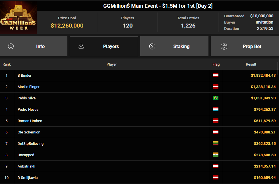 Interessanterweise wollte Binder 20 Prozent seiner Anteile verkaufen, konnte jedoch lediglich 0,1 Prozent davon abgeben, sodass ihm nahezu das gesamte Preisgeld verblieb. Doch dieser Erfolg war nicht sein einziger: Auch bei anderen Turnieren konnte er sich Preisgelder sichern. Neben ihm räumten auch Ole Schemion, Roman Hrabec, Aubstriakk, Daniel Smiljkovic, Clickwork, Nikkyz, Timinator, Chris Nguyen und Fabian Bernhauser beachtliche Summen ab. Chris Nguyen gewann insgesamt über $190.000 aus mehreren Events, während Nikkyz in zwei Turnieren zusammen $170.817 einspielte.
