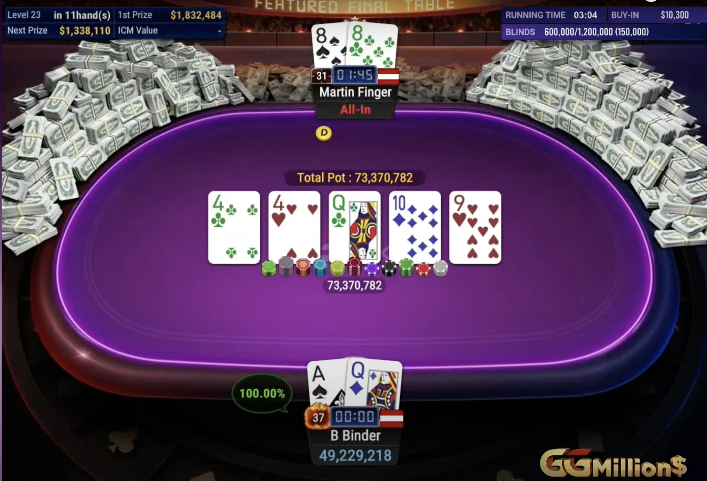 Der Österreicher Bernhard Binder lieferte gestern Abend eine beeindruckende Vorstellung: Als Chipleader nahm er am Finaltisch des GGMillion$ Main Events Platz und krönte sich schließlich zum Champion. Das prestigeträchtige Turnier mit einem Buy-in von $10.300 und einer garantierten Preisgeldsumme von $10 Millionen lockte 1.226 Teilnehmer an, die den Preispool auf beachtliche $12.260.000 anwachsen ließen.
