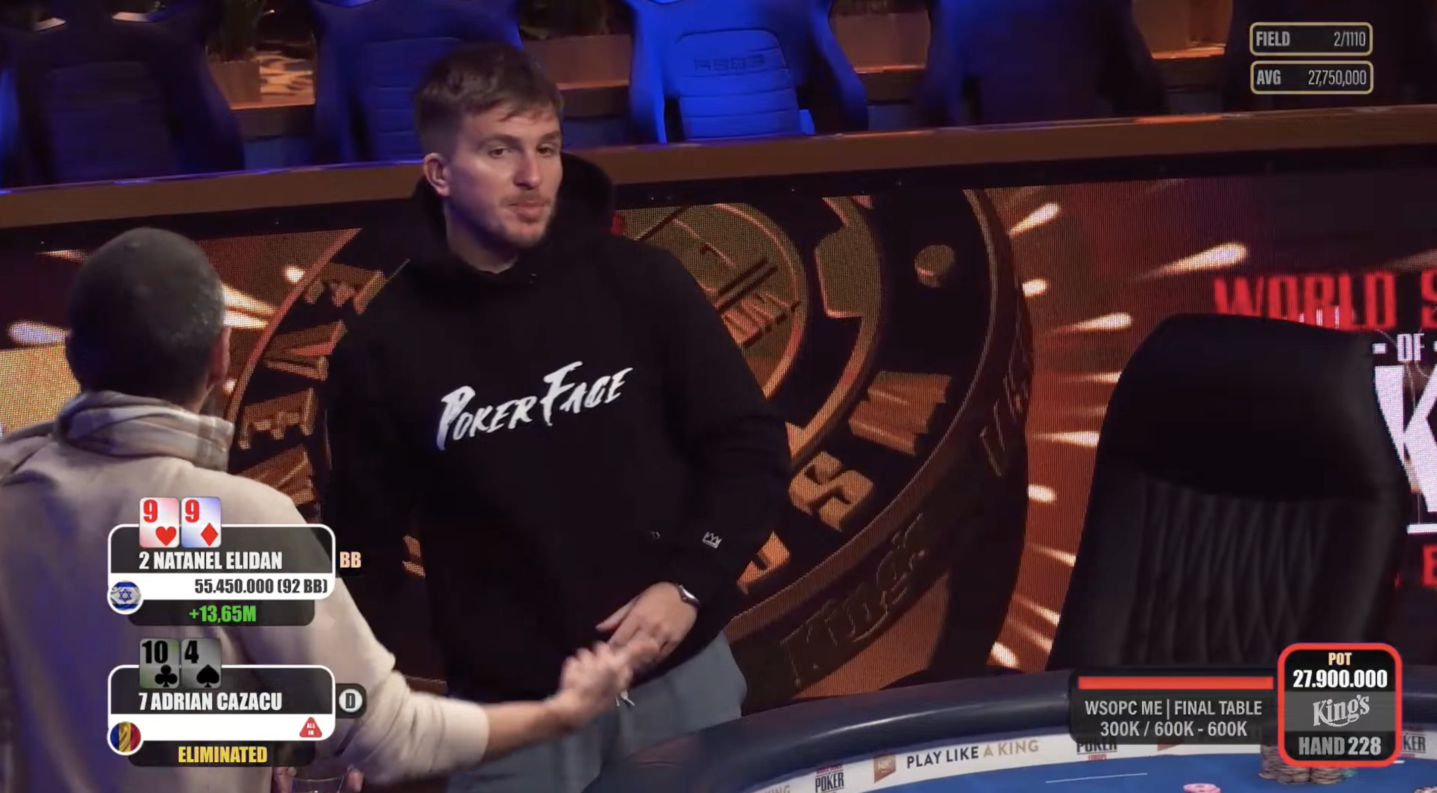 Adrian Cazacu erreichte das finale Heads-up, wo er auf den israelischen Chipleader Natanel Elidan traf. Nach einem intensiven Dreistunden-Duell kämpfte sich Cazacu kurzzeitig an die Spitze, konnte den Sieg jedoch nicht sichern. Am Ende krönte sich Natanel Elidan zum WSOPC Main Event Champion.