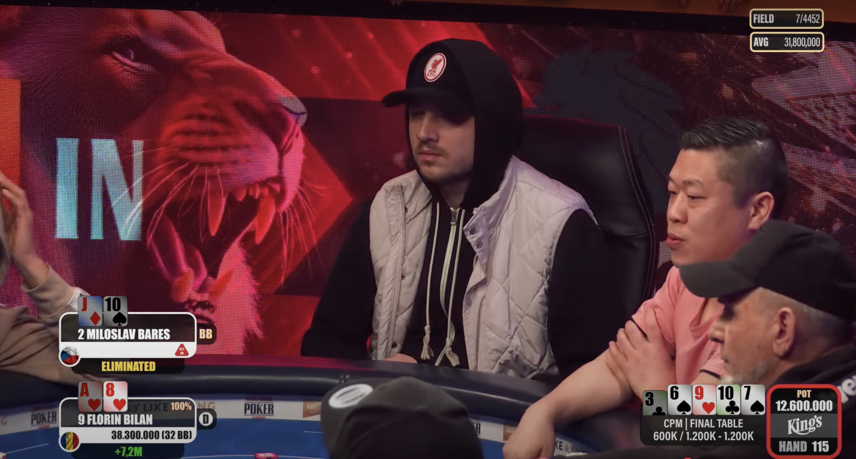 Miloslav Bareš, der die tschechische Fahne am Finaltisch hochhielt, beendete das Turnier auf Platz 7 und wurde mit €9.200 belohnt. Sein Ausscheiden kam, nachdem er bis auf lediglich 4 Blinds gefallen war.