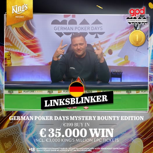 Nach mehr als 11 Stunden Spielzeit stand im King's der Champion fest. Der Spieler mit dem Nickname Linksblinker setzte sich in einem riesigen Feld von 2.277 Entries durch und sicherte sich 35.000€ sowie den prestigeträchtigen Titel des Siegers der German Poker Days Mystery Bounty Edition! Auf dem zweiten Platz landete Damien Christ Balthazard, der 20.000€ aus Rozvadov mitnahm.