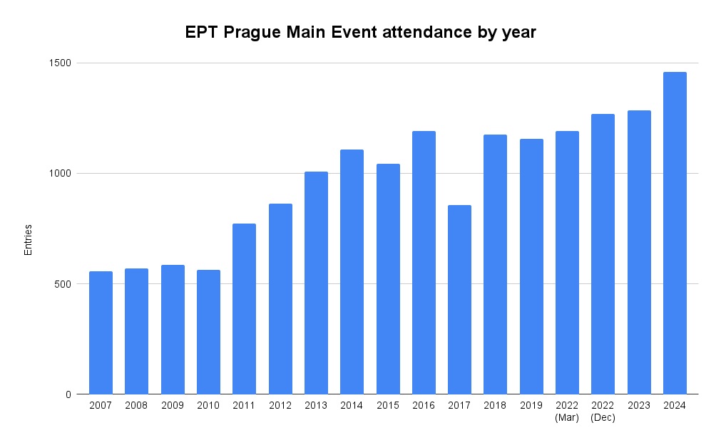 Die EPT Prag schreibt Geschichte! Mit 1.458 Teilnehmern und einem Preispool von €7.071.300 beim €5.300 Buy-in Main Event werden alle bisherigen Rekorde gebrochen – zur großen Freude der Organisatoren.