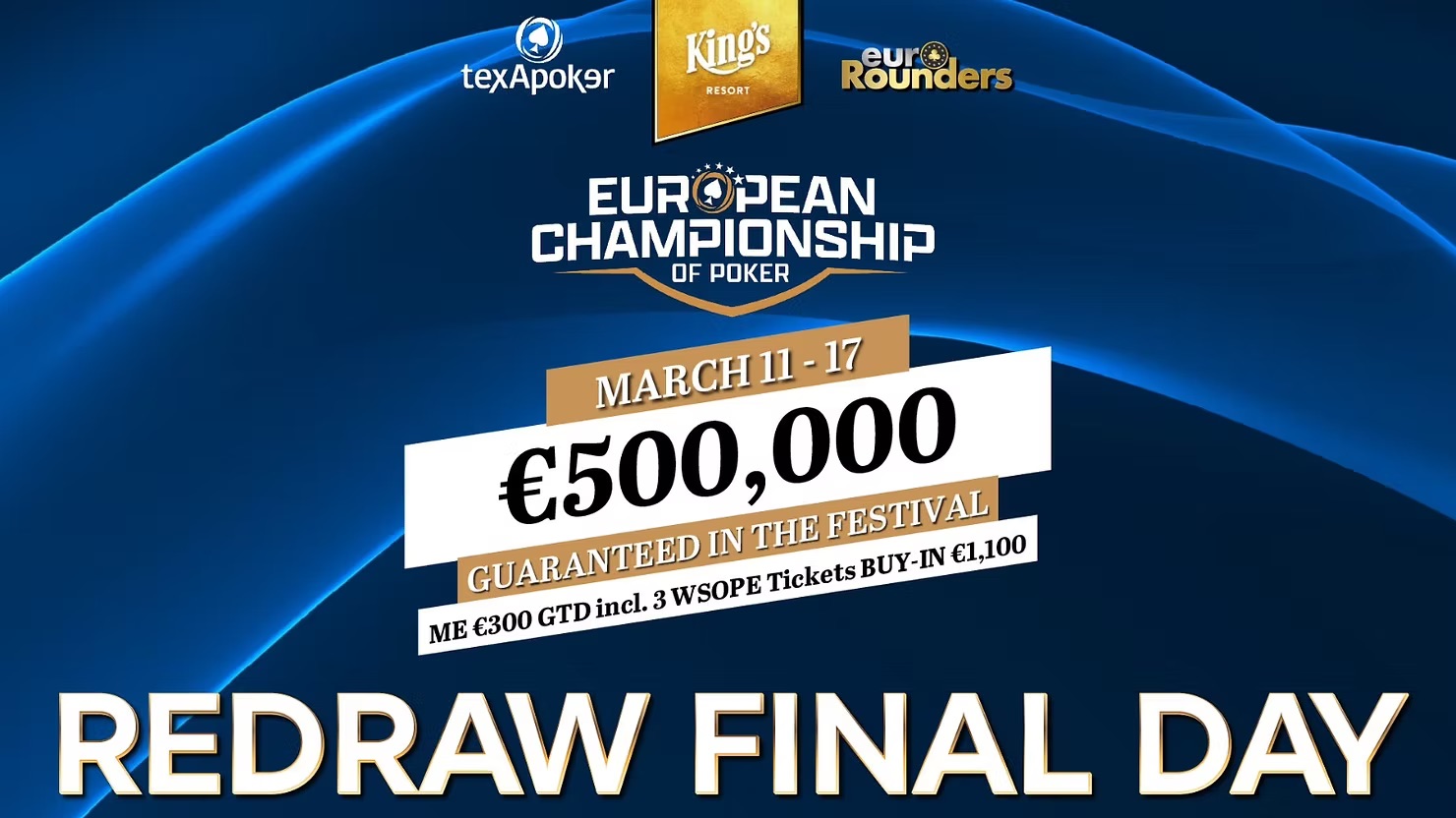 Alle verbleibenden Spieler haben mindestens €4.550 gewonnen, und der Sieger kann sich auf €43.800 freuen. Der Finaltag beginnt um 14:00 Uhr mit Blinds von 15.000/30.000/30.000, wobei die Blinds jede Stunde erhöht werden.