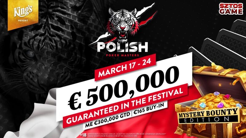 Der Pokerraum in Rozvadov hat sich wieder einmal mit der polnischen Organisation $ZTO$ zusammengetan, um die Polish Poker Masters Mystery Bounty Edition mit einem Main Event zu veranstalten, das eine Garantie von €300.000 bei einem Buy-in von €120 + €45 Bounty mit sich bringt. Auf die beiden besten Spieler wartet außerdem ein Ticket für das WSOPE Main Event.