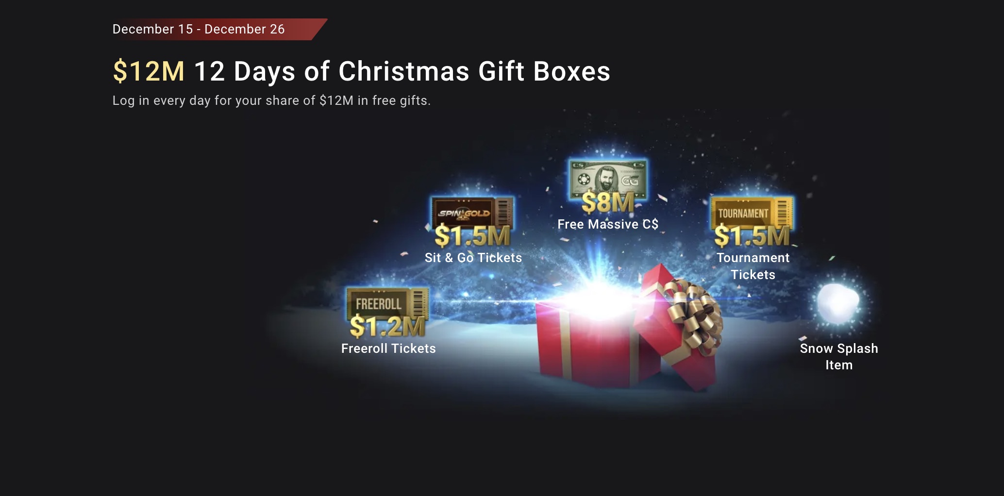 $12M 12 Days of Christmas Geschenkboxen: Tägliche Belohnungen für Spieler, die sich vom 15. bis 26. Dezember einloggen