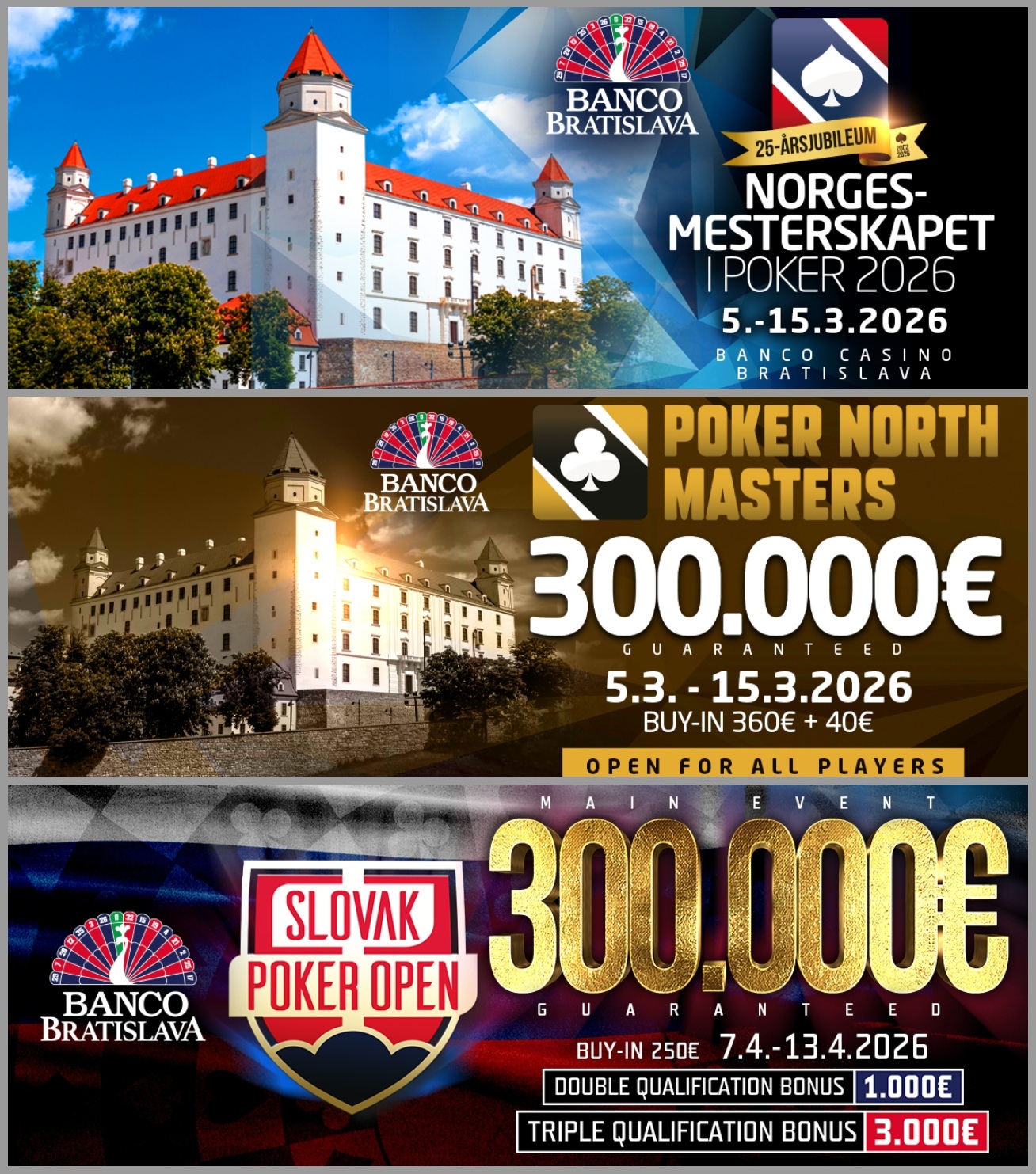 Banco Bratislava bringt schon dieses Wochenende zwei Events, darunter das spezielle Ladies Night am Samstag mit einem GTD von 3.000€ und den Super Saturday mit einem GTD von 10.000€, bei einem Buy-in von nur 50€.