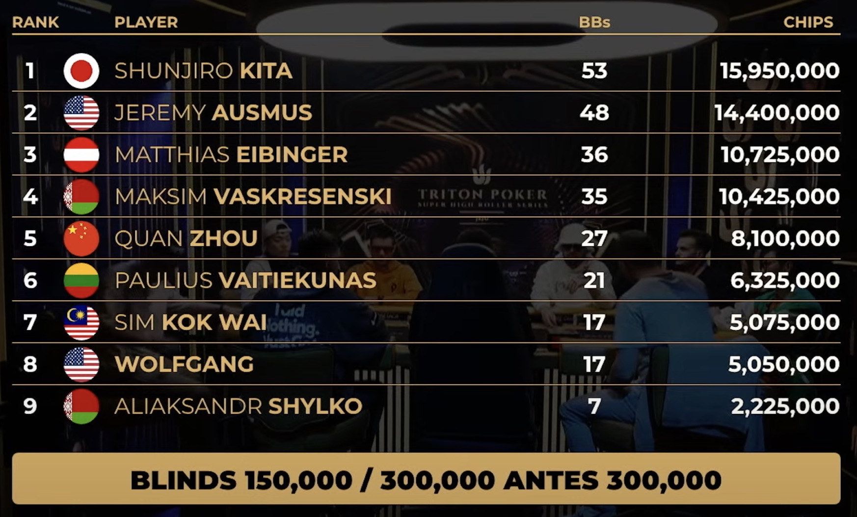 Der erfolgreiche Poker-Youtuber Alexander "Wolfgang Poker" Seibt startete mit dem zweitkleinsten Stack in den Finaltisch, doch auch das hielt ihn nicht davon ab, unter die ersten vier Spieler zu kommen. Dies ist die erste Station für Seibt in der Triton-Serie und er beendete sein drittes Turnier mit einem guten Ergebnis. Für seinen 4. Platz nahm er $680.000 mit nach Hause.