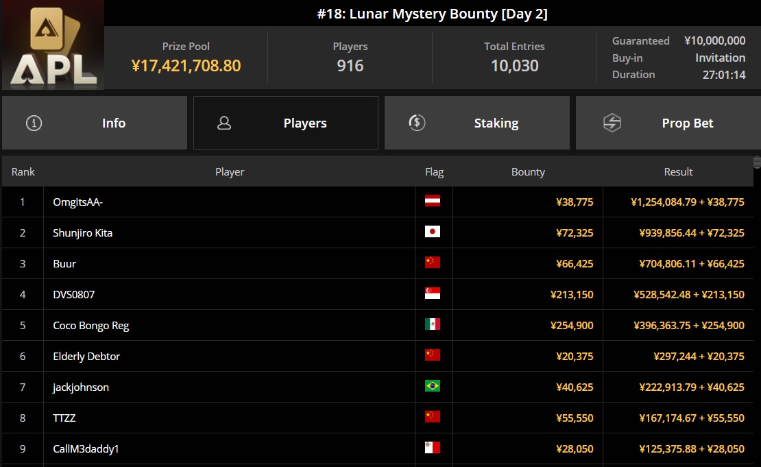 Es ist wieder Zeit für unsere wöchentliche Zusammenfassung der wichtigsten Ereignisse im Online-Poker. Auch dieses Mal analysieren wir die größten Gewinne der DACH-Spieler. Der größte Erfolg der Woche gehört dem österreichischen Spieler "OmgItsAA-", der sich im Lunar Mystery Bounty der APL-Serie durchsetzte. Bei einem Preispool von $2.402.597 kassierte er als Champion satte $178.296.