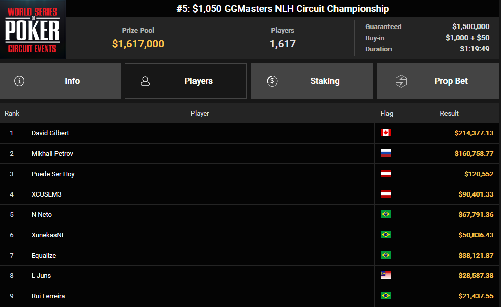 Am Finaltisch der $1.050 GGMasters NLH Championship kämpften zwei DACH-Spieler um den goldenen Ring. "Puede Ser Hoy" belegte den dritten Platz und gewann $120.552, während Adi "XCUSEM3" Rajkovic den vierten Platz belegte und $90.401 mit nach Hause nahm.