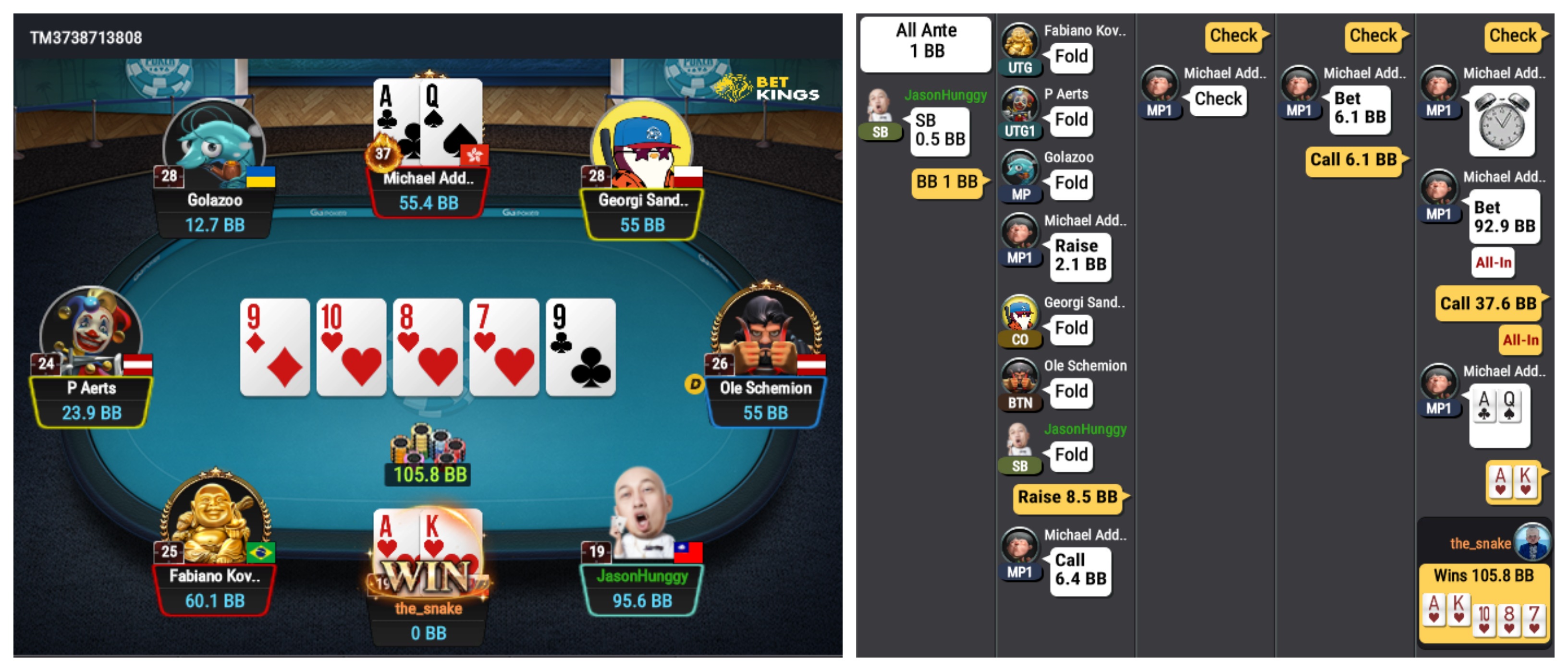 Du hast einen bleibenden Eindruck hinterlassen, als du David Peters ( K s T h vs A c 8 c )aus dem Turnier geworfen hast. Mit welchen anderen Top-Spielern der Welt hast du noch gespielt?