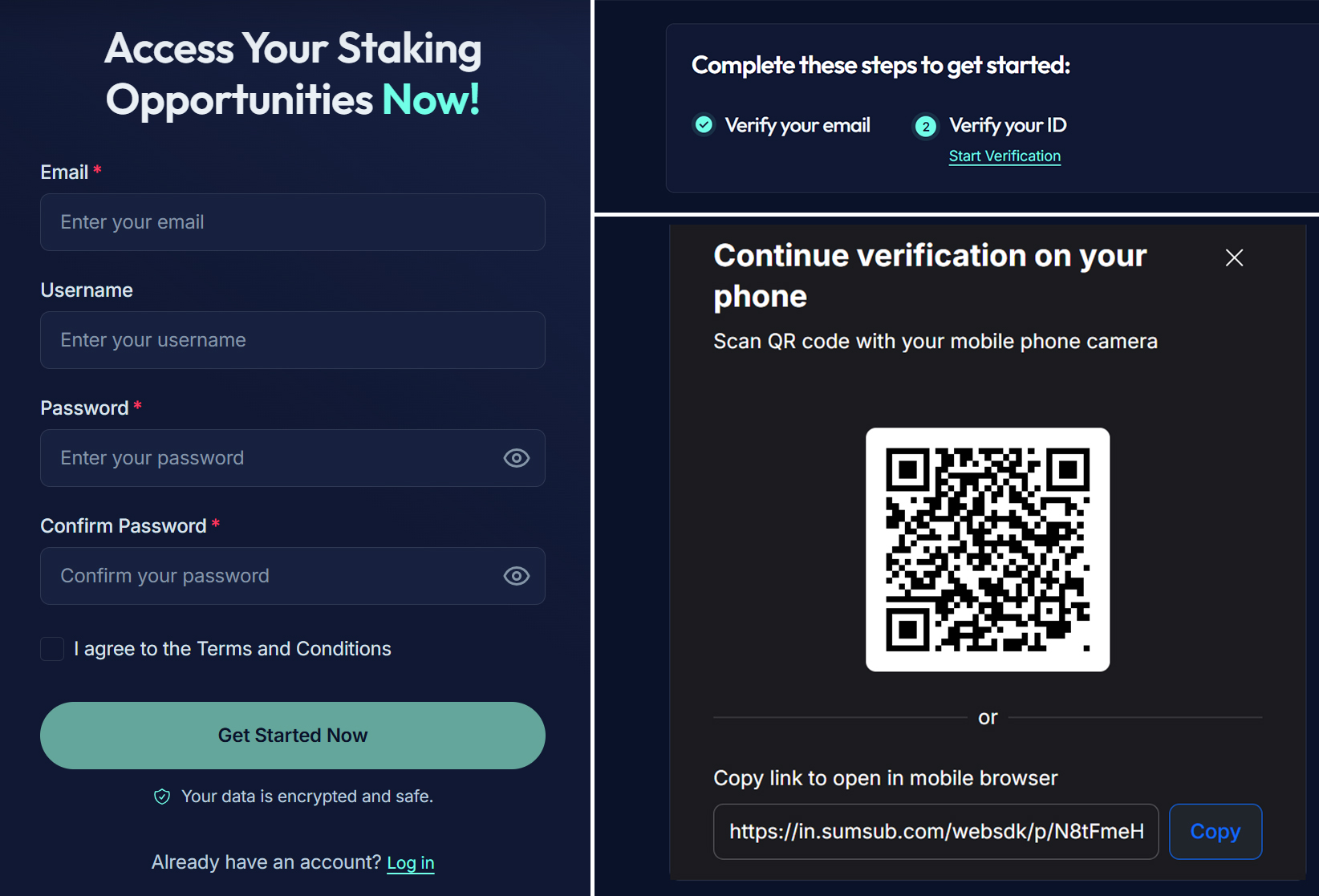 Der Beginn ist unkompliziert: Auf der Seite Upstakes erstellst du ein Konto per E-Mail und Passwort. Die Seite begrüßt mit modernem und stilvollem Design, es wird jedoch empfohlen, einen Computer für die GTO-Challenge zu nutzen. Die Webseite ist vollständig responsiv und funktioniert auf allen Geräten problemlos.