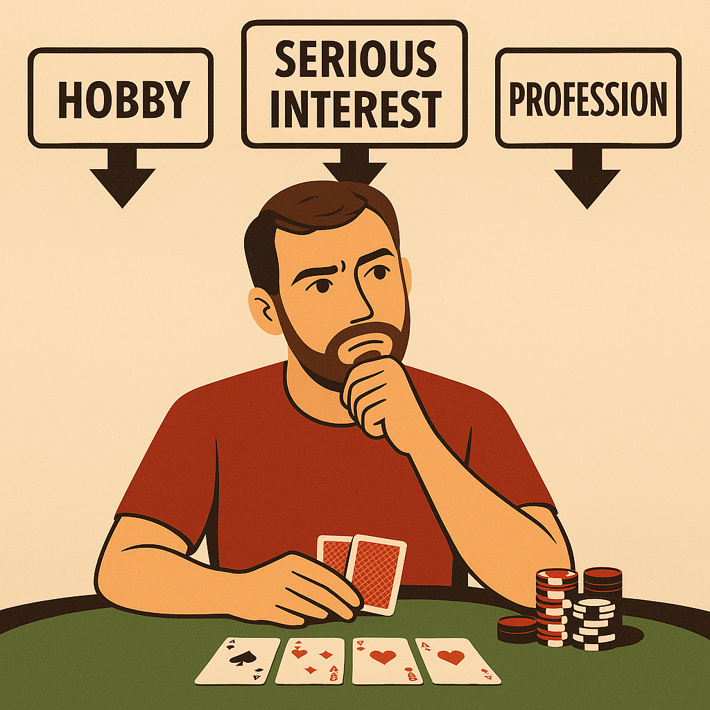 Bevor du Zeitpläne, Trainingspläne oder Prioritäten festlegst, ist es wichtig, eine grundlegende Sache zu klären. Welche Rolle spielt Poker in deinem Leben. Ist es eine gelegentliche Unterhaltung, ein ernsthaftes Hobby mit dem Ziel, sich zu verbessern, oder eine Ambition, die eines Tages zum Beruf werden könnte? Die Antwort auf diese Frage bestimmt, wie viel Energie, Zeit und Disziplin sinnvoll in Poker investiert werden sollte und was du bereit bist, dafür anzupassen.