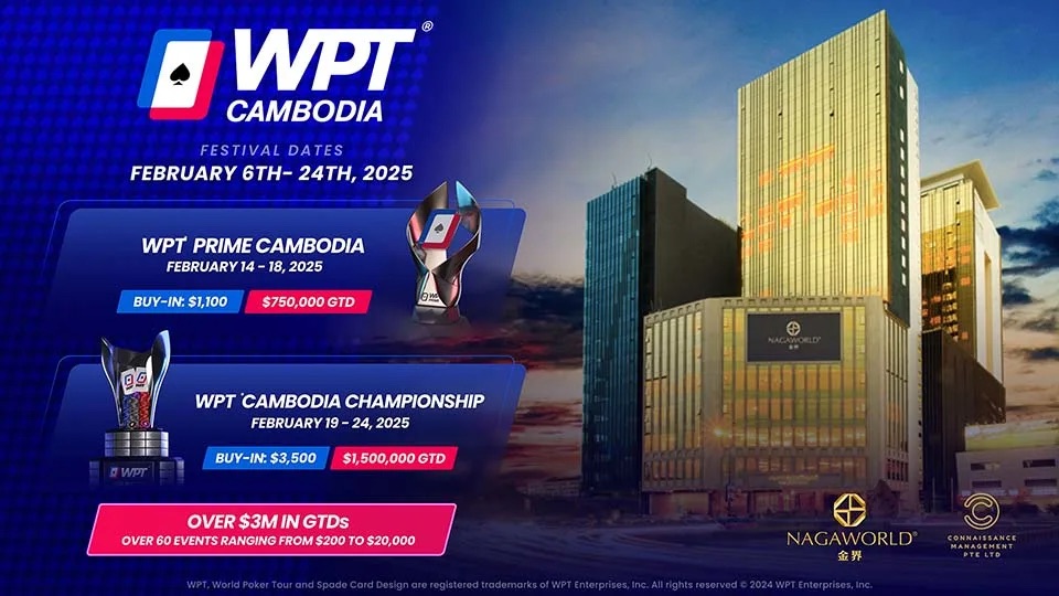 Vor uns liegt die WPT Cambodia, die vom 6. bis 24. Februar stattfindet und bis zu 19 Tage Poker mit bis zu 63 Turnieren bietet. Die Hauptattraktionen sind die WPT Prime Cambodia Championship mit einem Buy-in von $1.100 und einer Garantie von $750.000, sowie die WPT Cambodia Championship mit einem Buy-in von $3.500 und einem Garantiebetrag von $1.500.000.