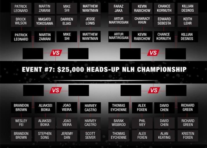 Gestern fiel während der WSOP auch der Startschuss für das prestigeträchtige Event #7: 25.000$ Heads-Up No-Limit Hold'em Championship. Insgesamt 64 Spieler nahmen die Herausforderung im klassischen K.-o.-Modus an. Nach zwei intensiven Runden sind nur noch 16 Spieler im Turnier und kämpfen heute um ihren Anteil am Preisgeld – 500.000$ winken dem Sieger.