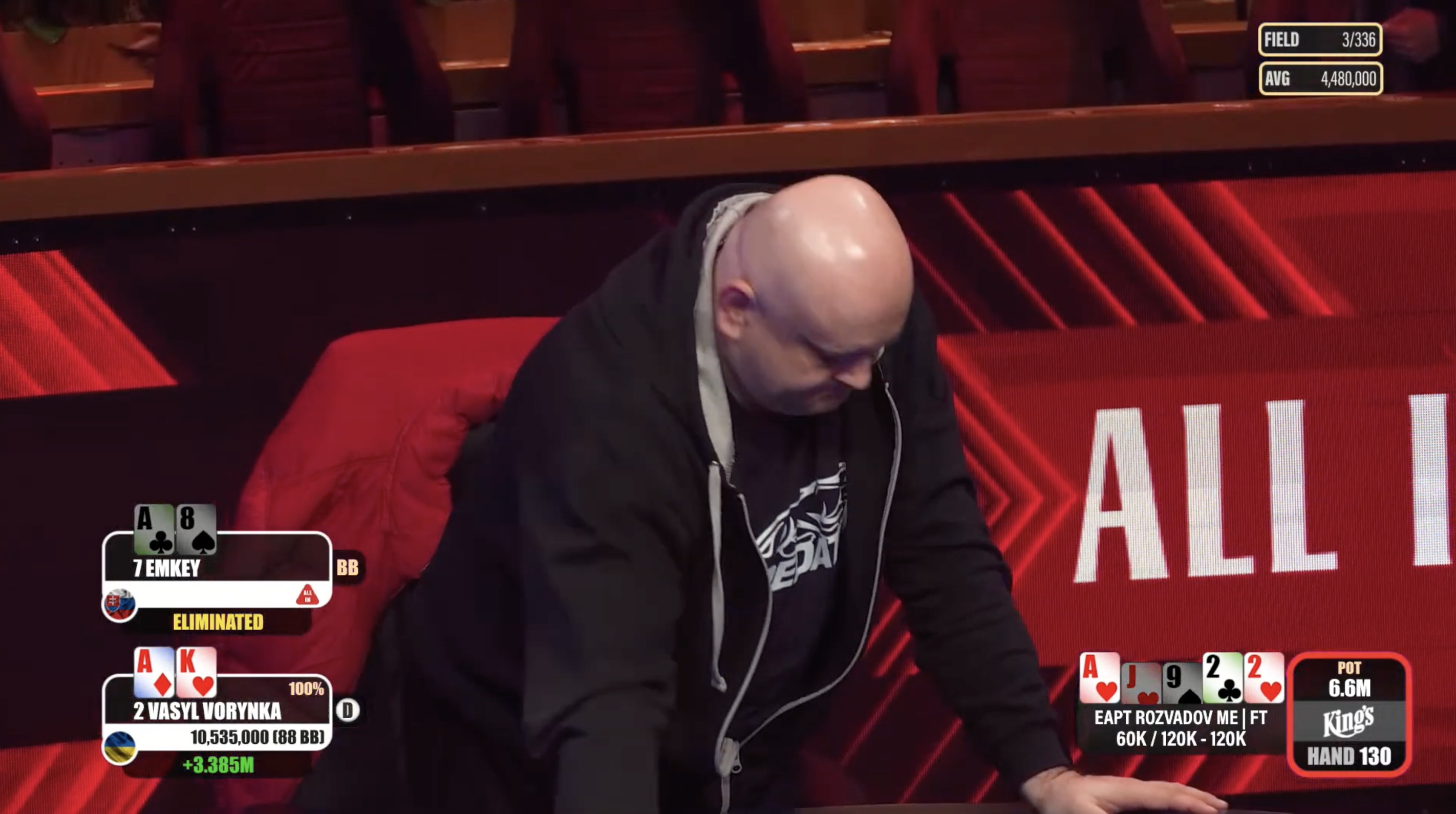 Das Casino zeigte sich mit den Teilnehmerzahlen des Main Events sicherlich nicht zufrieden. Mit nur 336 Spielern verfehlte das Turnier die Erwartungen deutlich, was das Casino dazu zwang, die Garantie um fast €100.000 aufzustocken.