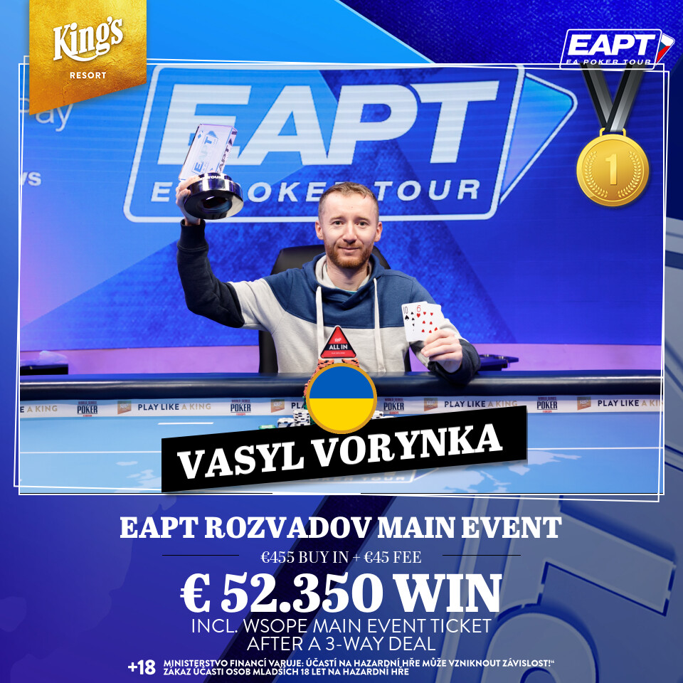 Nach nur rund 20 Minuten im finalen Heads-up stand der Sieger fest: Vasyl Vorynka aus der Ukraine konnt dies für sich entscheiden und durfte sich über €38.000 sowie die Trophäe freuen. Michal Majtyka, der den zweiten Platz belegte, nahm €28.000 mit nach Hause. Beide Spieler erhielten außerdem ein Ticket für die WSOPE European Championship.