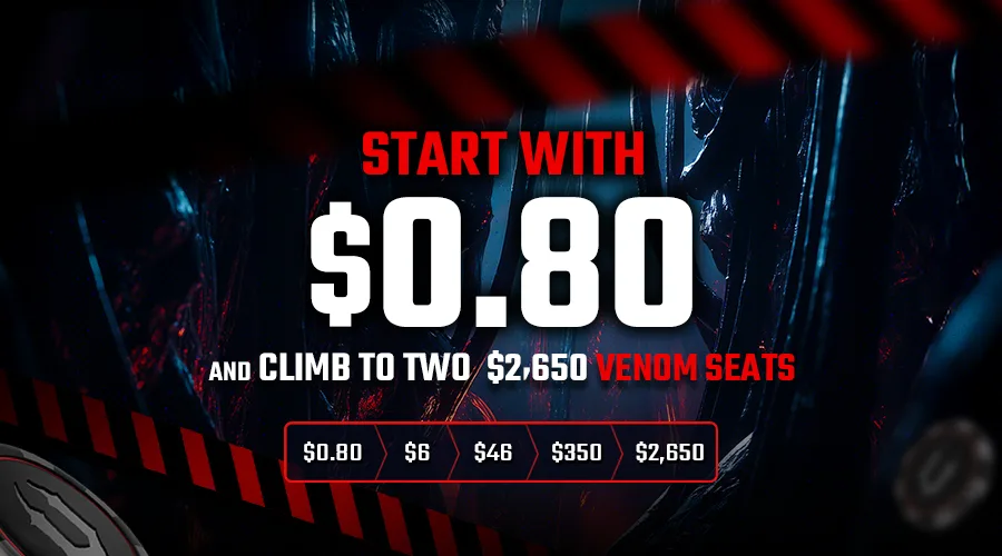 What makes this run unmissable is how it rewards both styles of killers. If you’re a patient builder, the five-flight structure lets you pick your best day, re-load, and walk into Day 2 with a real stack—already paid—then switch gears into bounty-hunting mode where one KO can be worth more than most final tables. If you’re a pure shot-taker, Venom Fever + Poison Path + Venom Vault basically dare you to turn cents into a $2,650 seat, and the minimum $5,000 bounty guarantee means the action never feels “small,” even deep in the field.