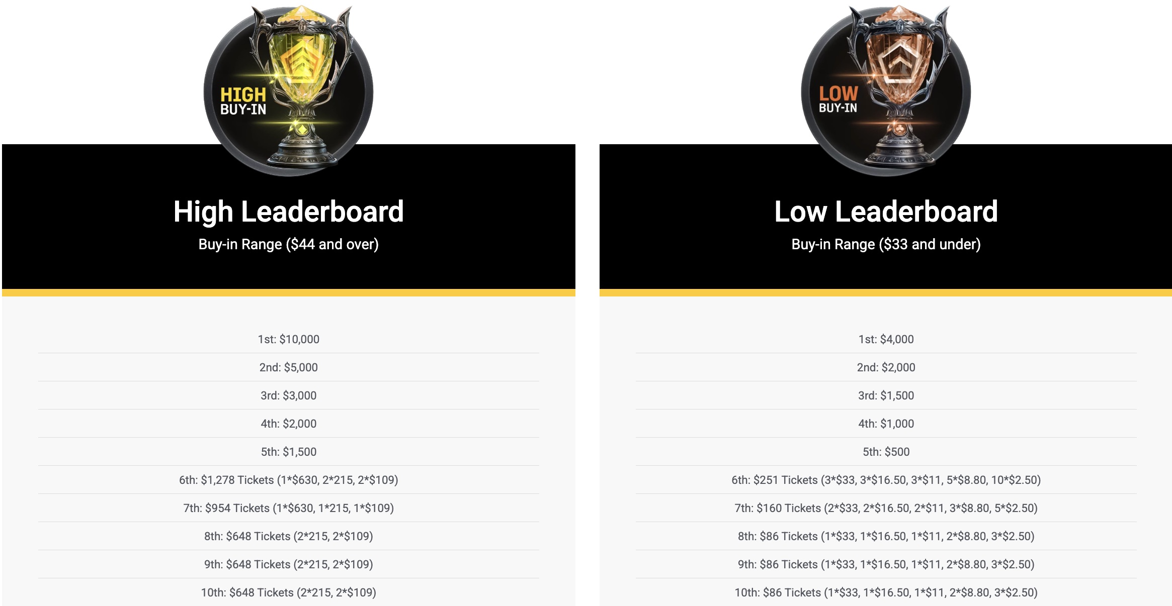 In the leaderboard for players with higher buy-ins, the winner will receive $10,000 and the second place player will receive $5,000. In total, 10 players will be rewarded. In the LOW leaderboard, 10 players will also be rewarded, but the winner will receive a smaller reward of $4,000. The player who finishes in second place here will take home $2,000. Players will only earn points for tournaments from the Online Super Series and only if they reach the ITM.
