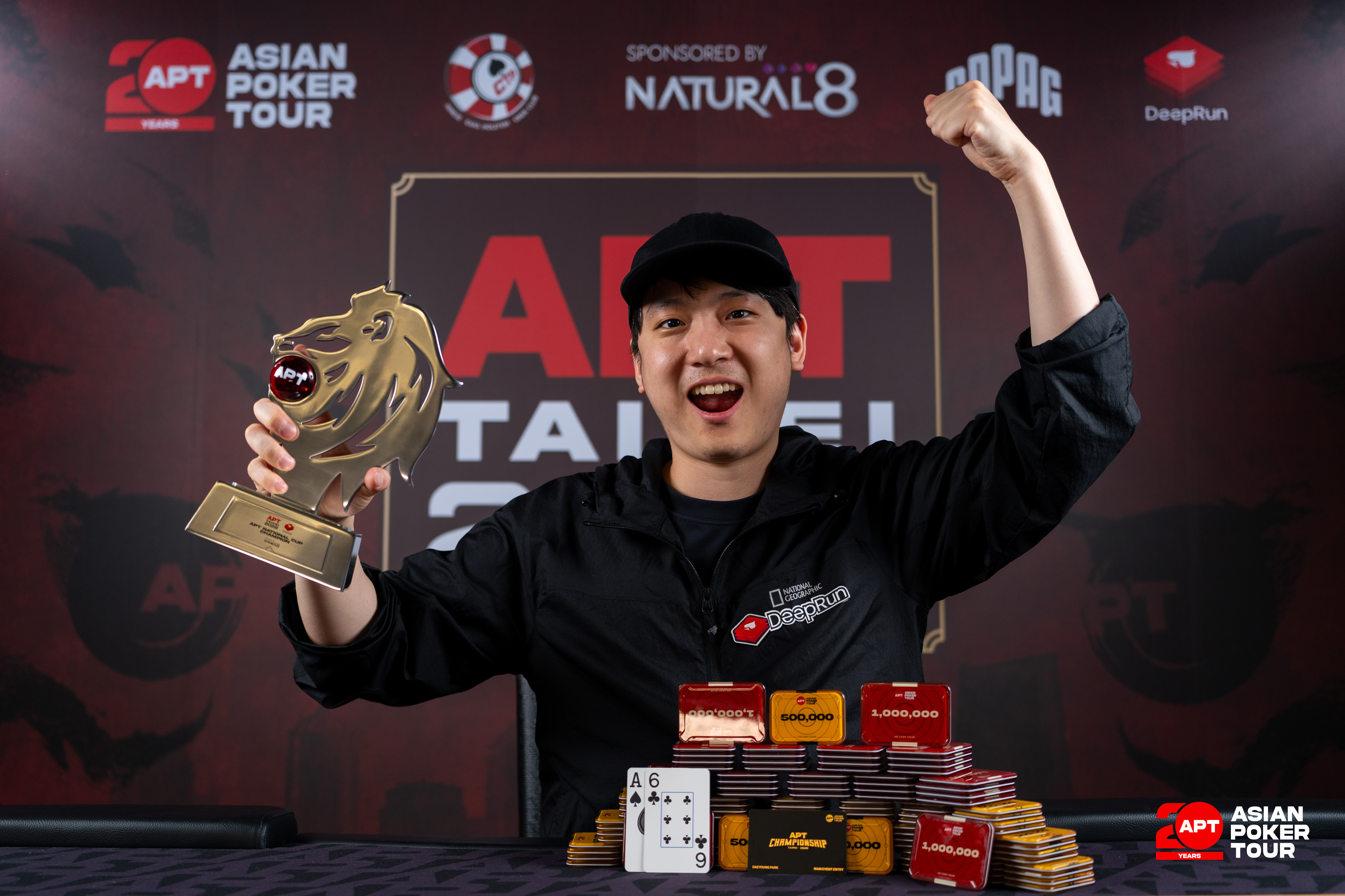 The players agreed to an ICM deal in the final showdown, playing on for the prestigious lion trophy, the title, and a $10,000 package for the APT Championship. In the last hand, Park with A s 6 c defeated his opponent's A d T d. The board first delivered a six on the flop with 3 s 6 s 9 c K s 2 s, securing Park a nut flush on the river.