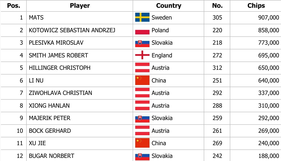 On Thursday, two flights were on the agenda, with the first starting at 4:00 PM. Players bought 122 times, which meant 12 players advanced. The evening turbo saw just 11 entries with one player advancing. In total, 13 players moved to Day 2, with the biggest stack going to Matszo from Sweden.