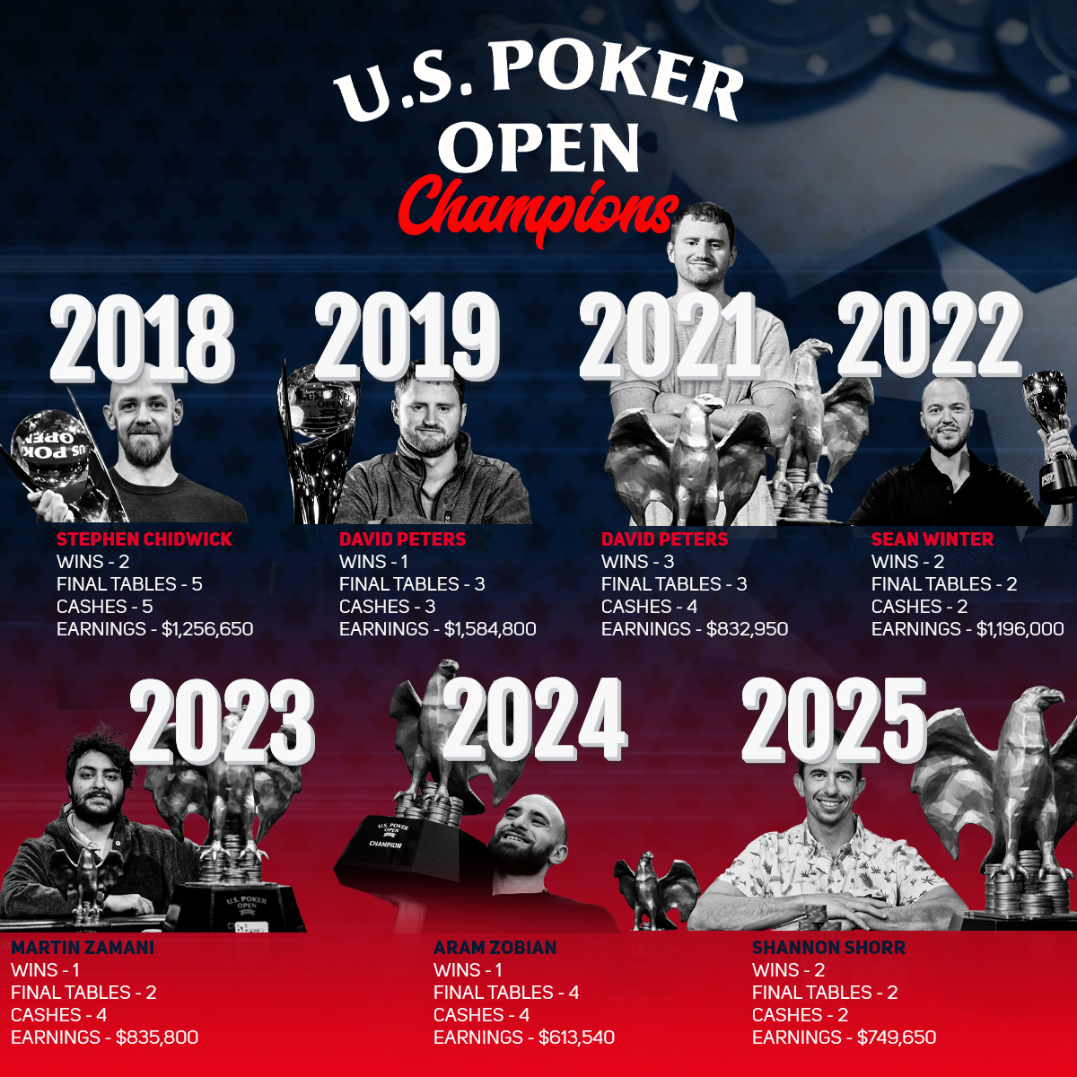 The U.S. Poker Open series is known for its high intensity, and this year is no different. Players compete not only for tournament winnings but also for the prestigious title of series champion, which includes the Golden Eagle trophy and a PGT Passport worth $25,000.