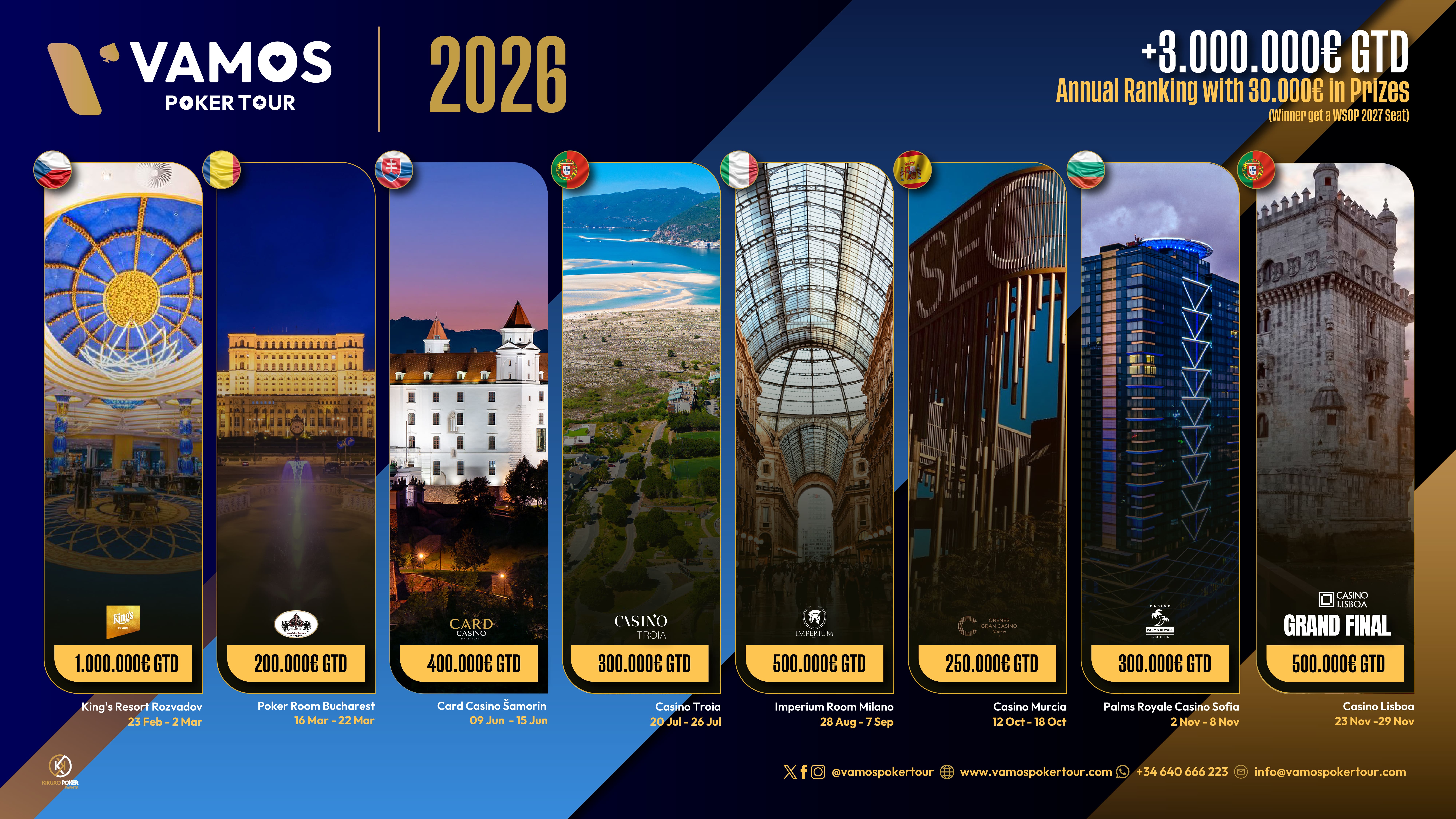 The entire calendar clearly signals that Vamos Poker Tour doesn't aim to be just another regional series in the crowded European scene. For players, it offers a rich selection of festivals year-round. For fans and partners, it's proof that Vamos Poker Tour continues to grow, entering 2026 with an exceptionally strong position.