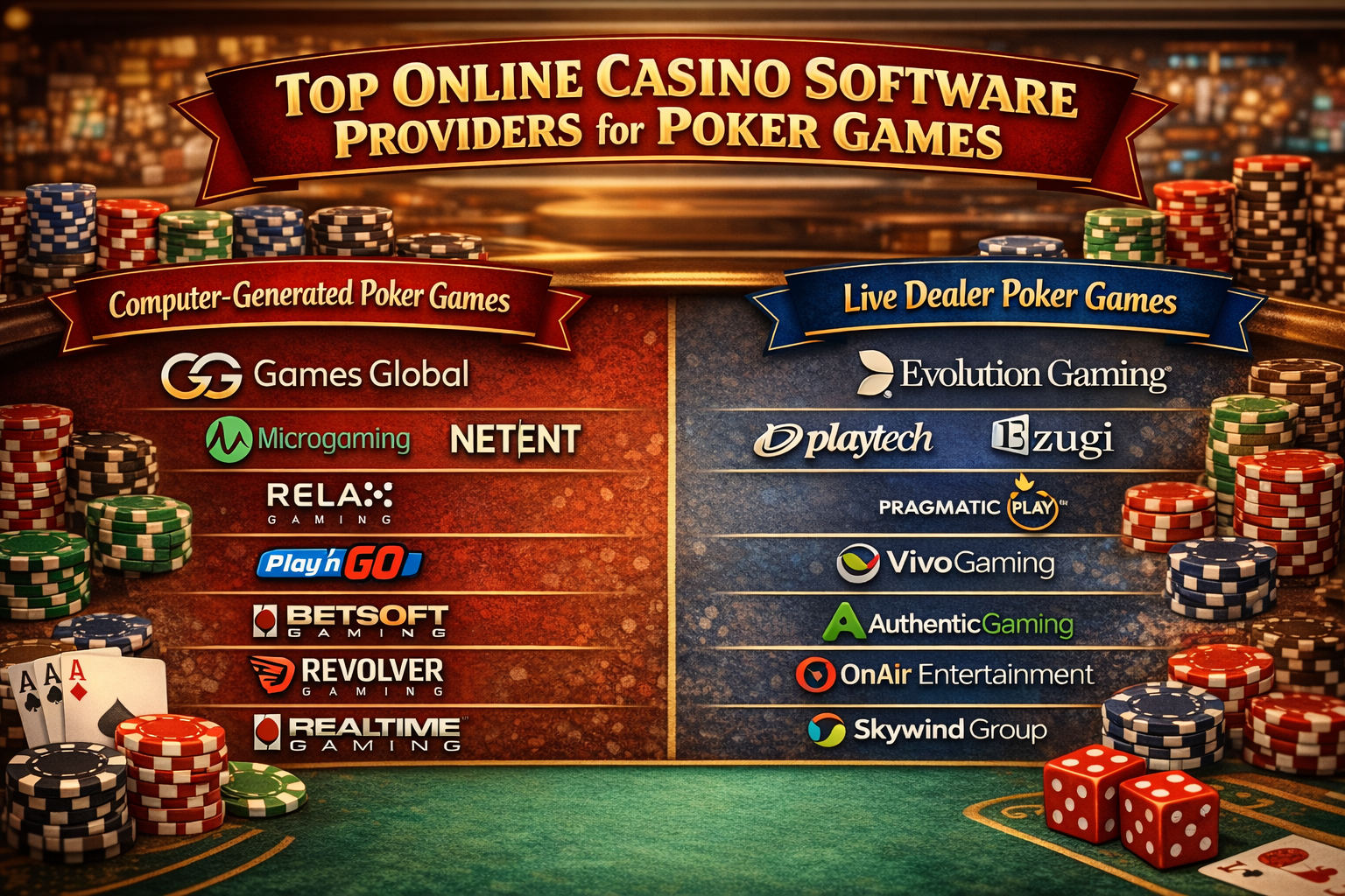 For both casual players and serious poker enthusiasts, certain software developers stand out more than others due to their extensive libraries and user-friendly games. On this page, we will be revealing the names of several top online casino software providers known for their poker games. Some of these companies have developed just computer-generated poker games, others cutting-edge live dealer poker games, or both formats.
