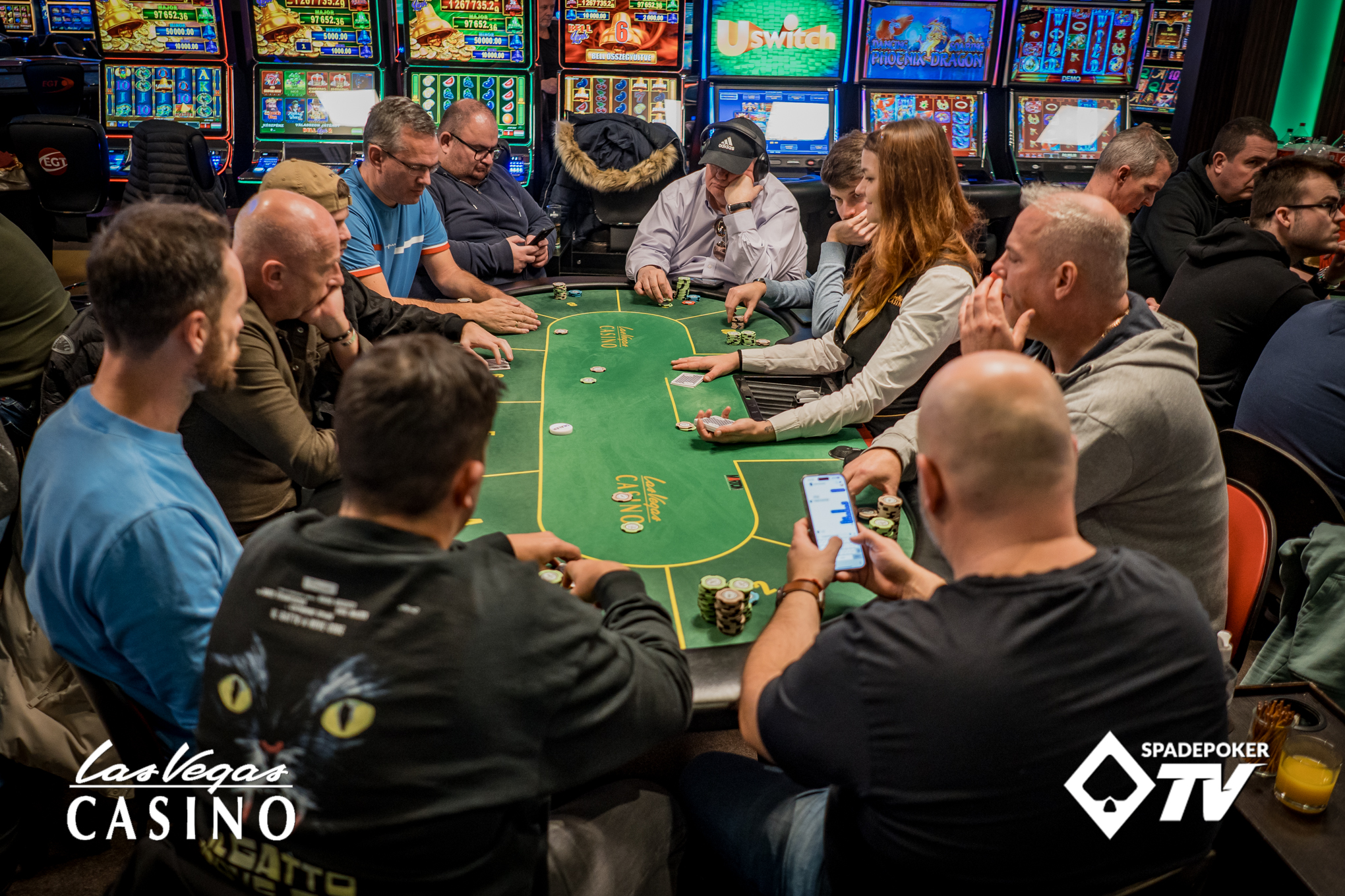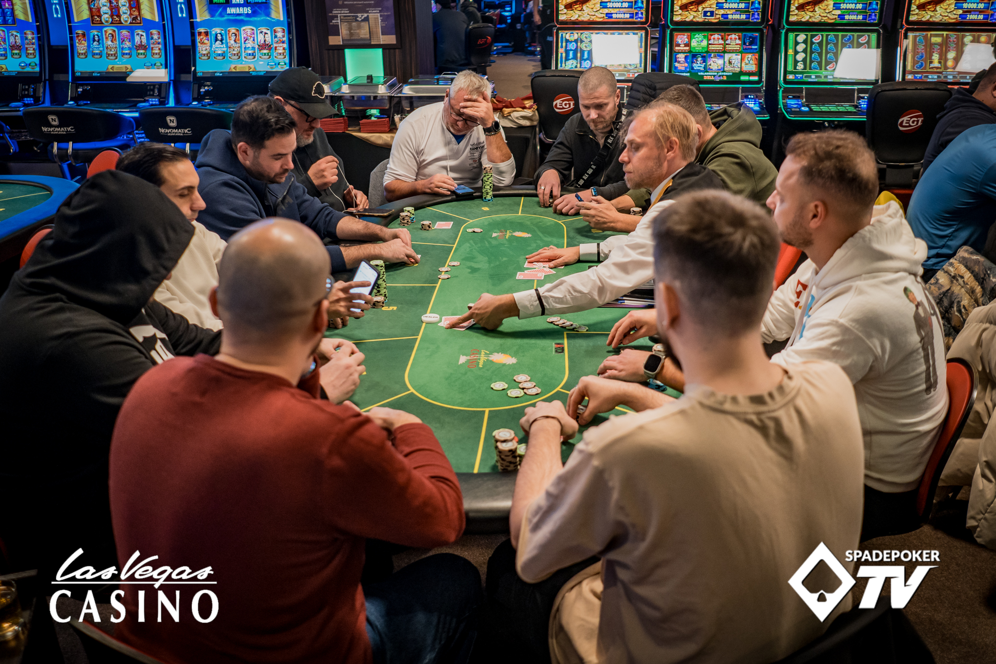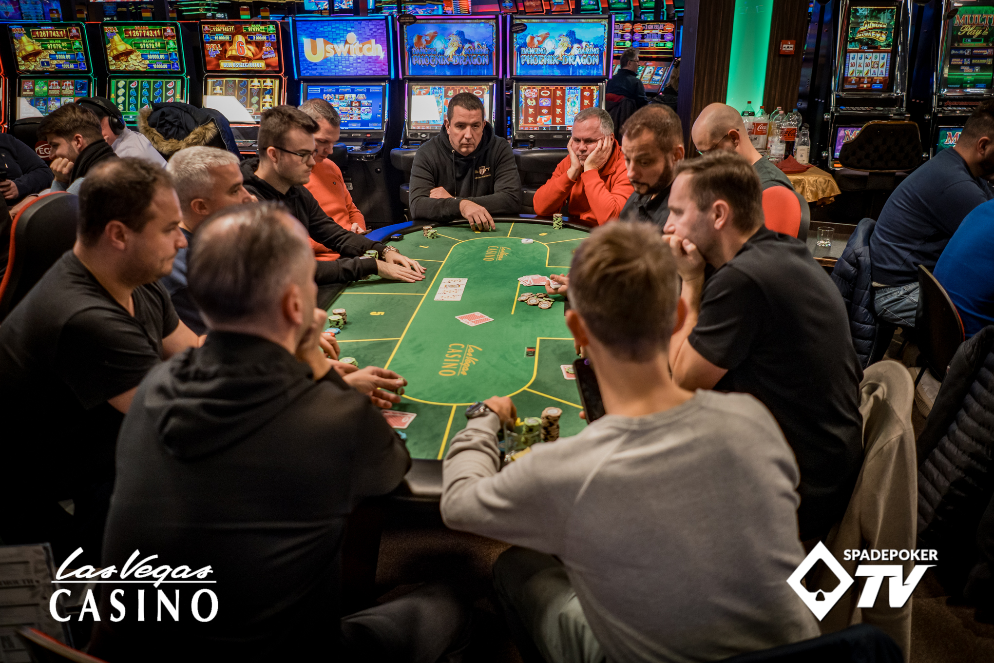 Cséri Zoltán 3bb-s short, amit a mellette ülő Németh András rendszeresen kihasznál. Az elmúlt percekben 8 alkalommal is pre-flop raiselt András, de eddig senki sem mert megadni, mert bizonyára arra várnak, hogy Cséri kiessen. Prémium hand fog kelleni, hogy nagyobb csatát láthassunk.