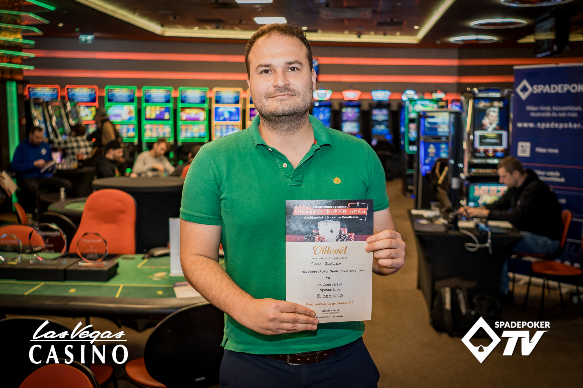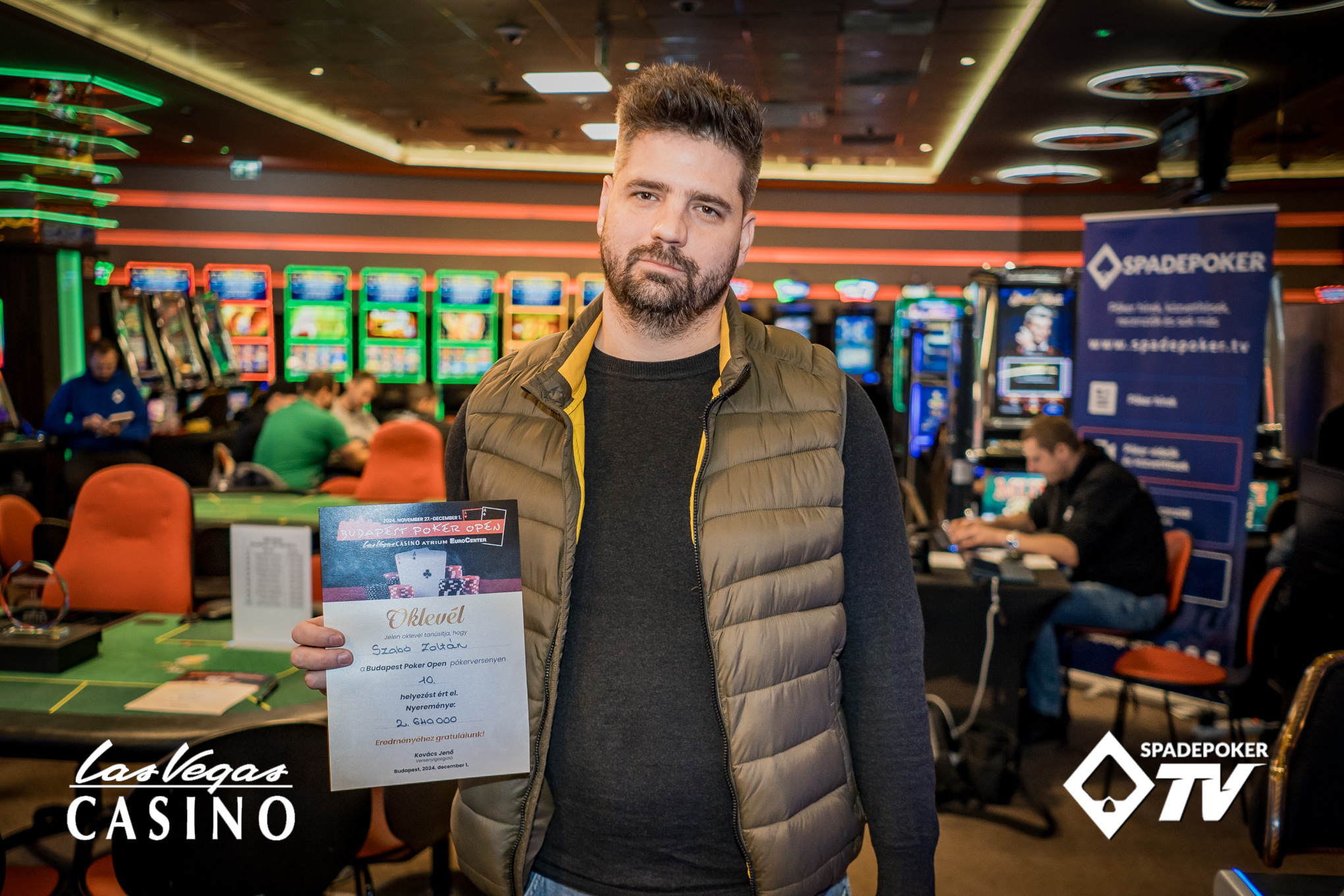 Szőllős Zoltán először Gyetván István ellen bukta stackjének nagy részét ( A h T s vs 7 s 7 c , 5 s 8 d Q h J s 7 d board) és már csak 5bb maradt előtte, amit a következő leosztásban el is bukott. A szerencse nem állt mellette, ismét A c T c -el maradt alul, ezúttal Németh András A s 7 h -vel szemben ( 4 s 7 c 3 h 6 c 8 h board).