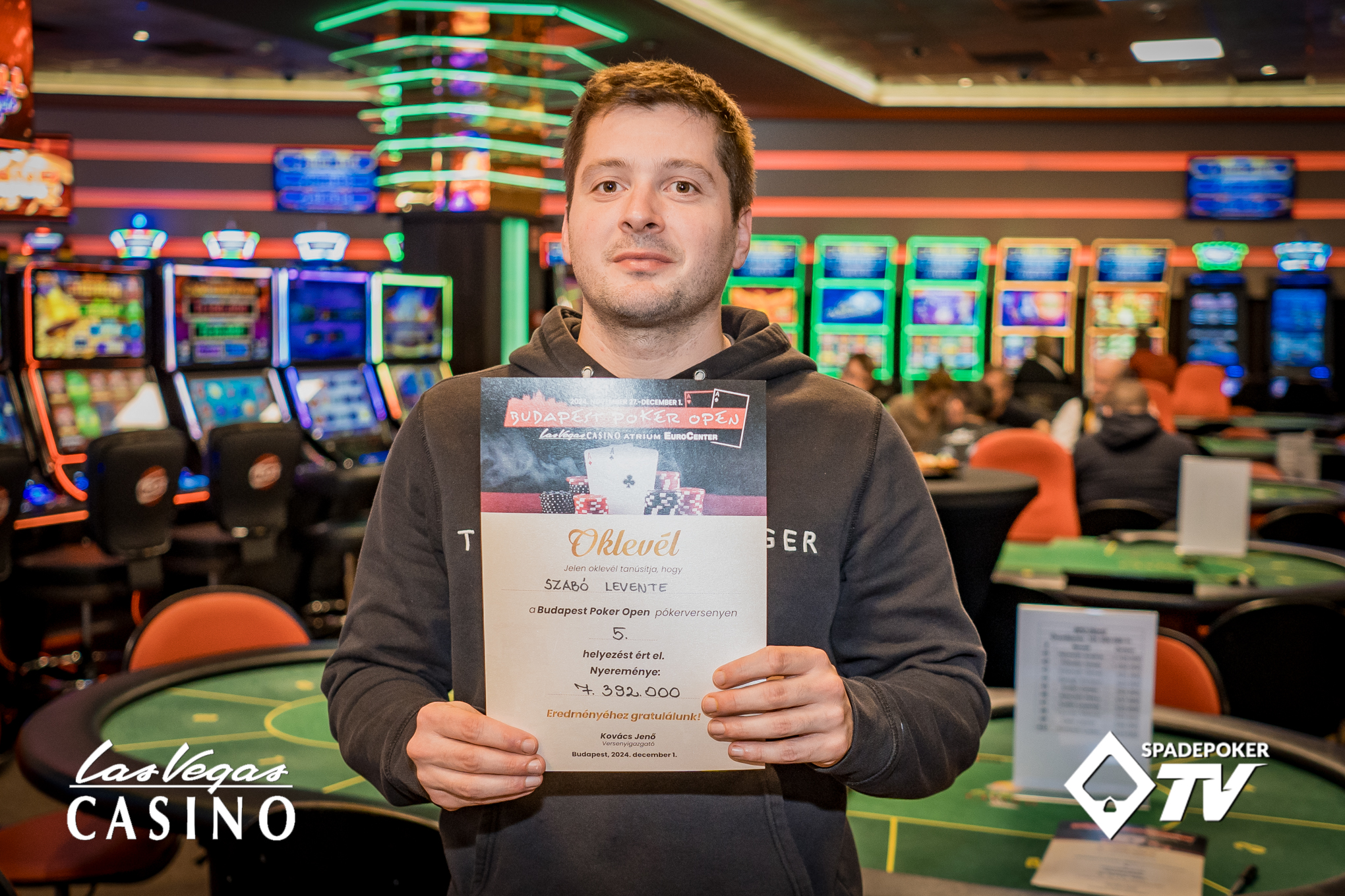 Egymás után két pókeres is kiesett. Miközben Kubicsek és Szabó Levente párbajoztak (K c J c vs A s K s , 4 d 6 c A h 5 s A d board) a négyes asztalról Baranyi Vincze is kiesett, így már csak egyetlen játékos fog üres kézzel távozni a tornáról.