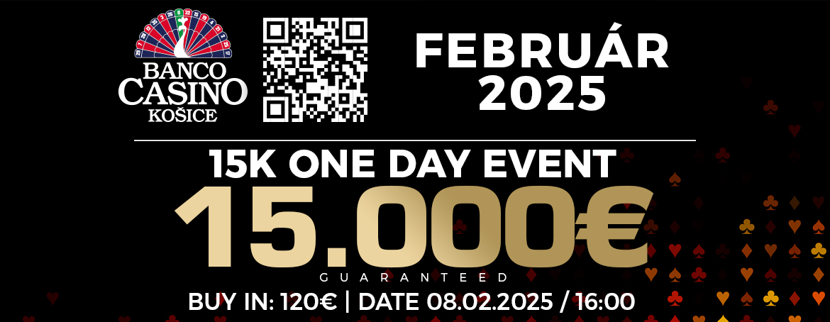 Szombaton a 15K One Day Event vár rátok, amelynek nyereményalapjában minimum 15.000 euró lesz. A tornán a 120 eurós nevezési díj befizetése után indulhattok. Február 8-án, szombaton 16:00 órakor kezdődik az említett event és minden regisztrált játékos 100.000 zsetonból álló stacket kap.