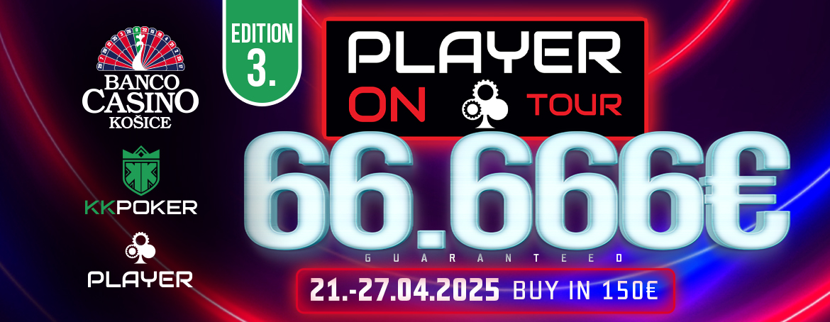 A Banco Casino előzetesen bemutatja a Player on Tour pókersorozat harmadik kiadását, amely április 21. és április 27. között kerül megrendezésre 66.666 eurós garanciával. Mindenkit szeretettel várnak, és lehet, hogy éppen te leszel a harmadik bajnok.