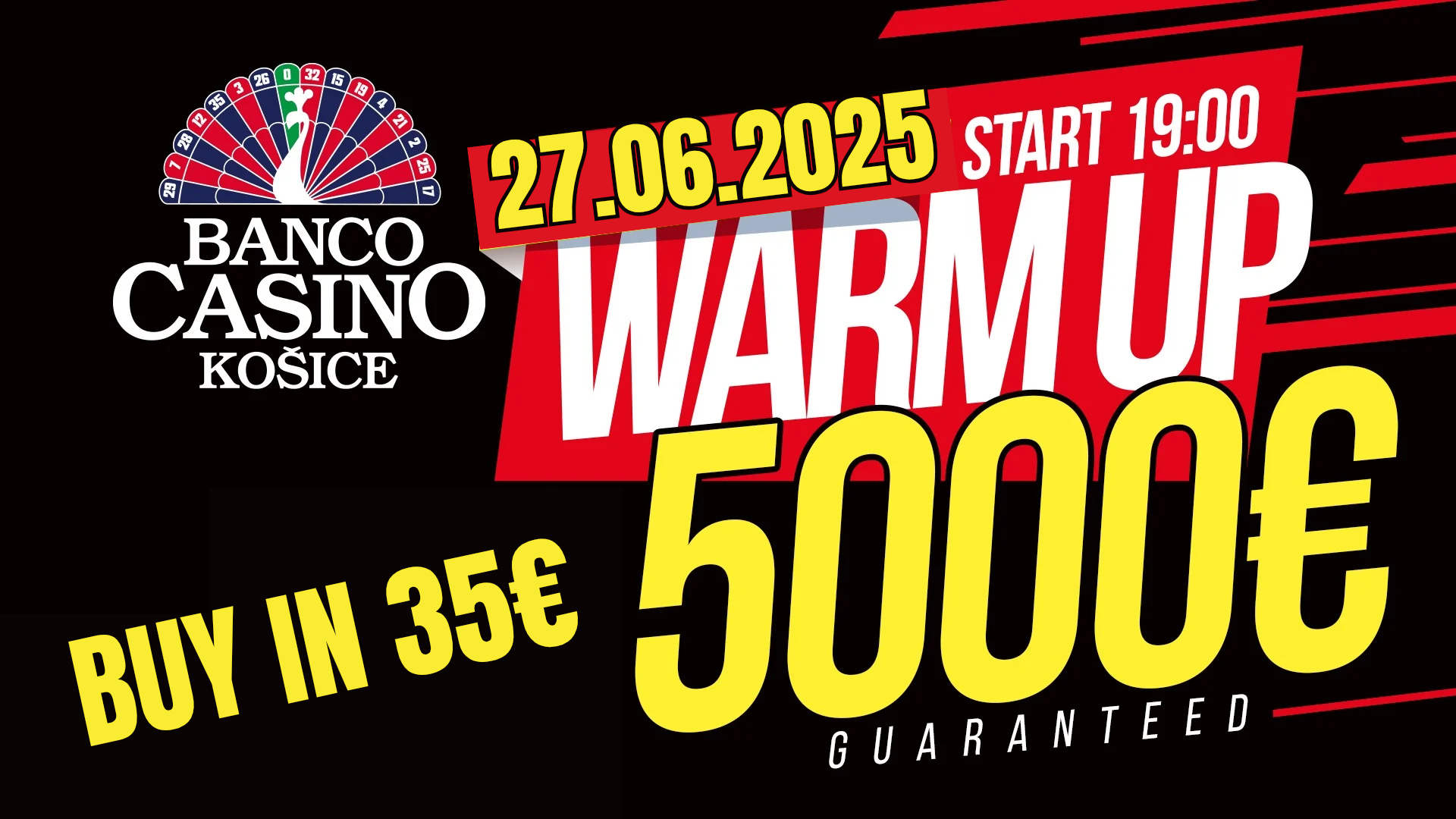Június végéhez közeledve a kassai Banco Casinoba érkezik a hónap legnagyobb tornája. Az idén először megrendezett, történelmi jelentőségű Košice Weekend szombaton, június 28-án indul a kaszinó lenyűgöző termeiben – ezúttal is 30.000€ garantált nyereményalappal. Egy biztos: ezt az eseményt semmiképp sem érdemes kihagyni!