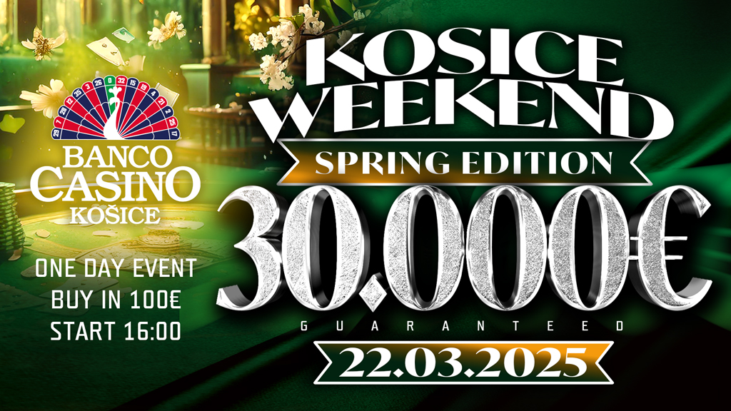 A hónap második felében is érdekes versenyekre kerül sor. A Košice Weekend tavaszi kiadásán a 100€-s nevezési díjért ezúttal 30.000€-s garancia vár a résztvevőkre. Jegyezd fel tehát a 2025.3.22 dátumot, és legyél te az új bajnok!